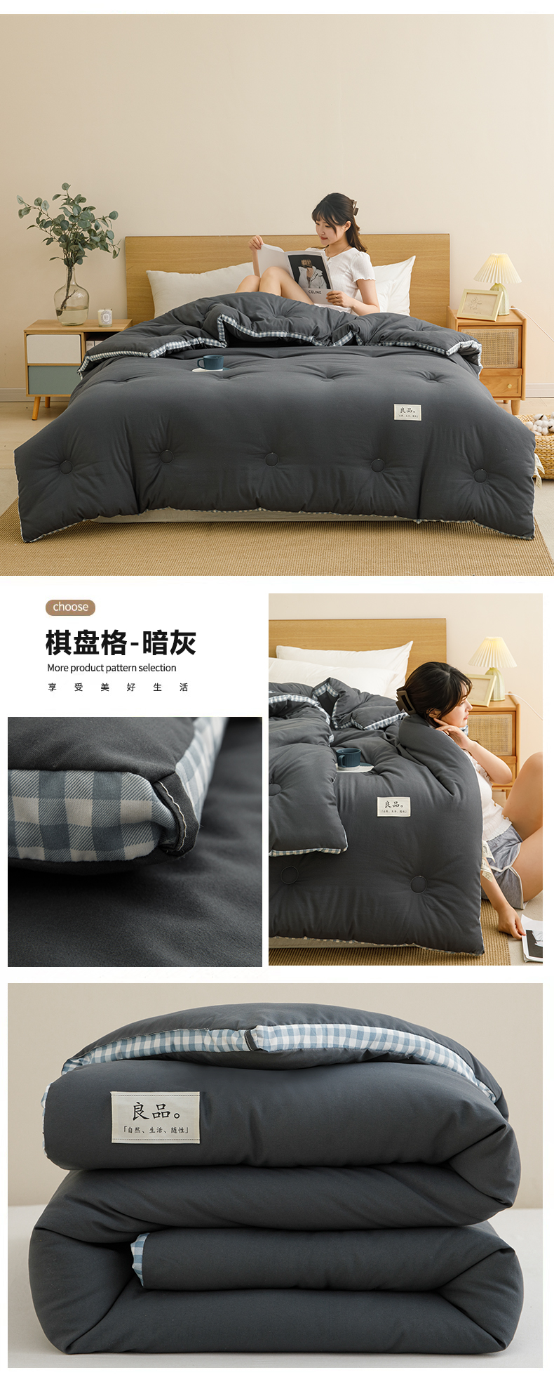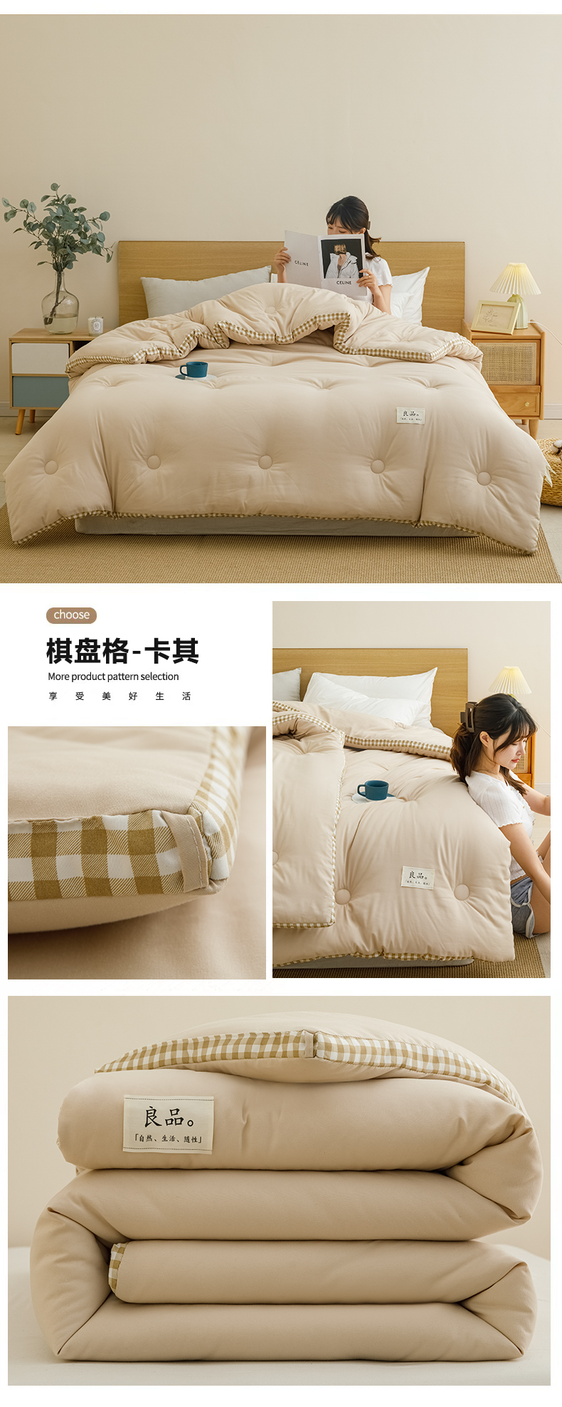 • 91家纺网 家纺一手货源 找家纺 小叮当家纺仓储工厂店 2025新款无印风水洗磨毛立体大豆纤维被被子被芯 棋盘格-浅粉【A类母婴级 大豆纤维】