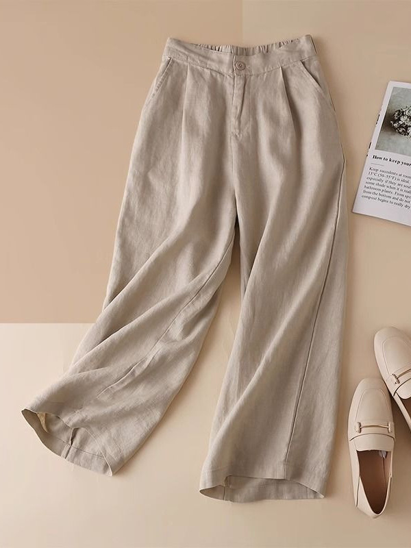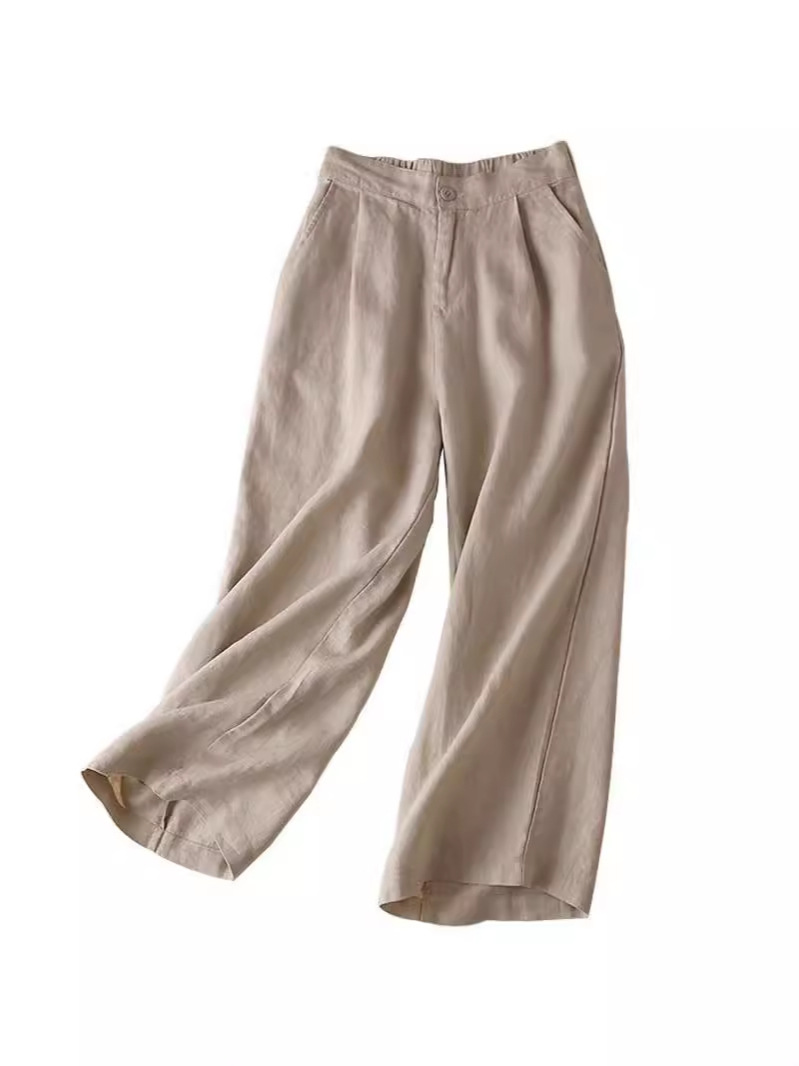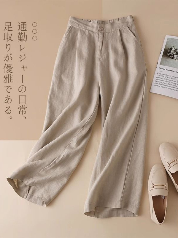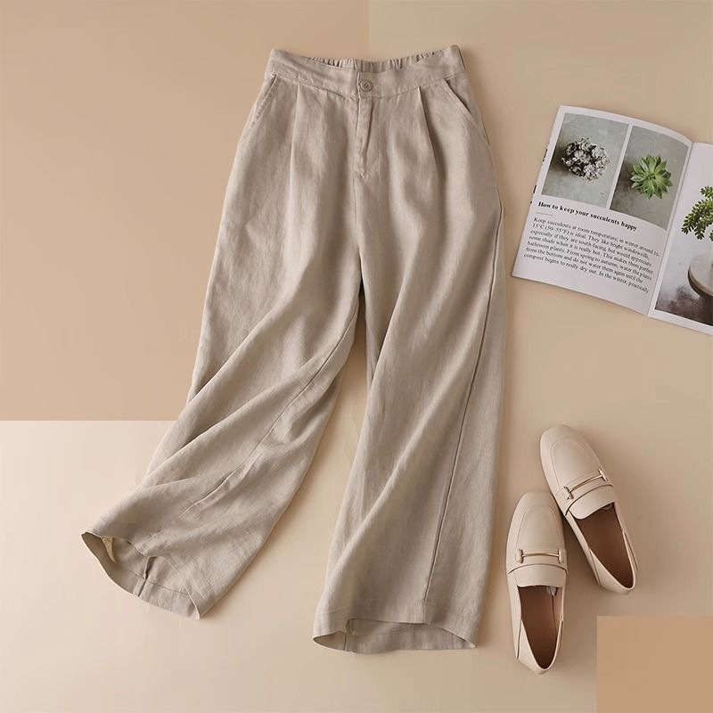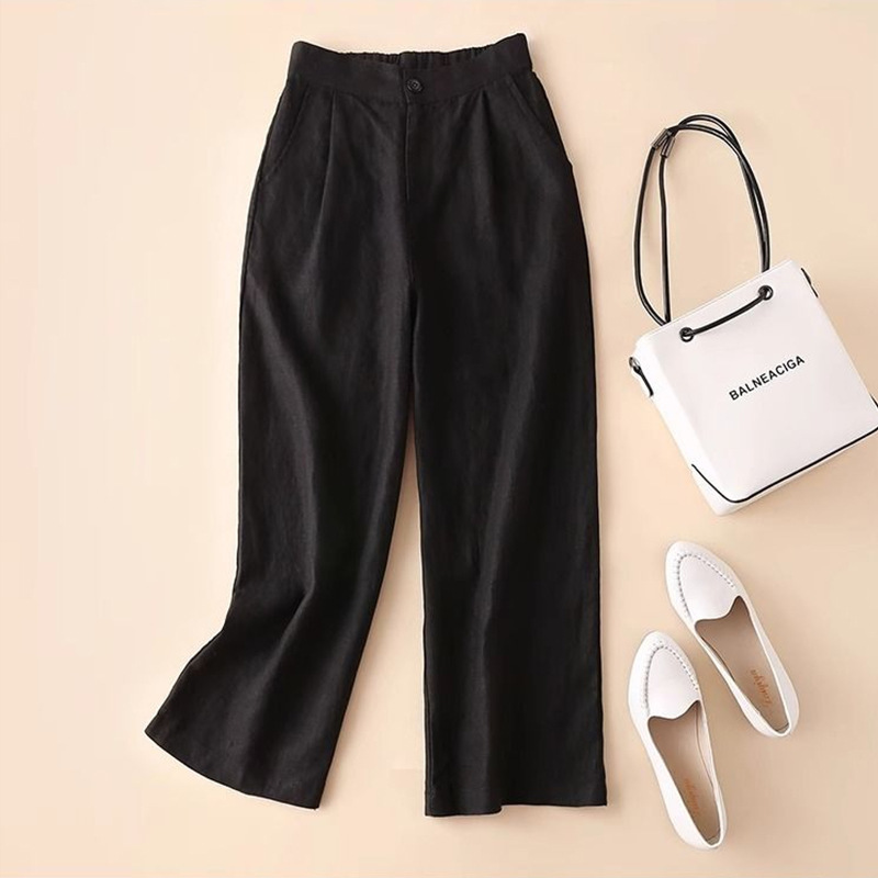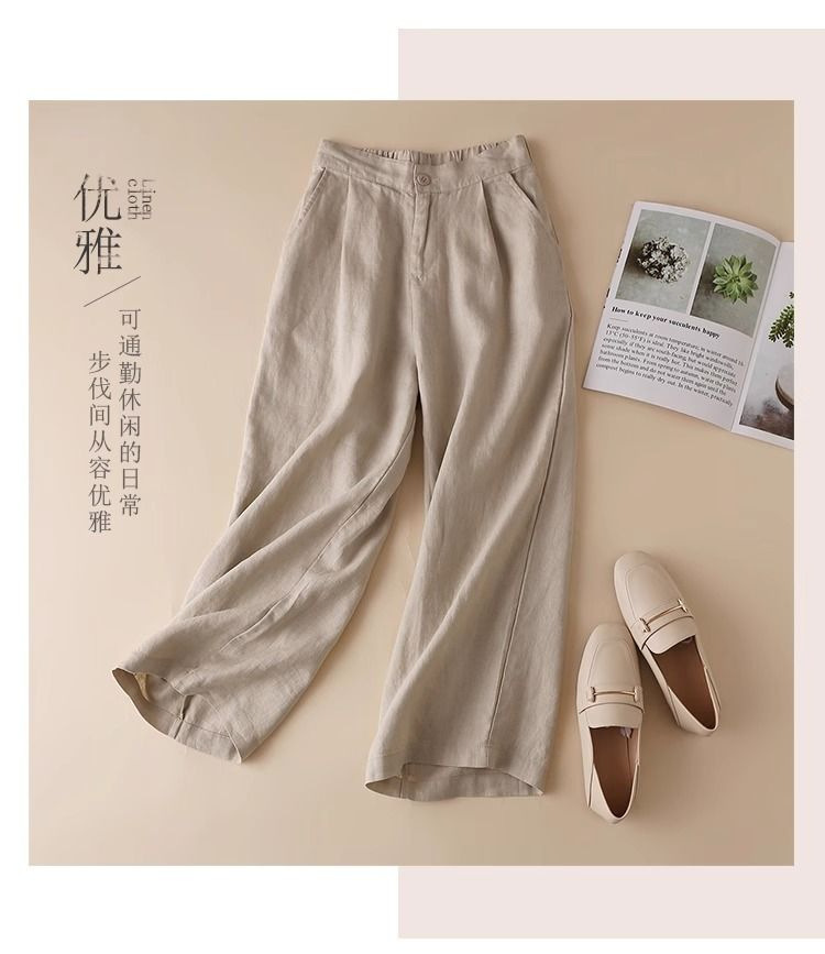 (总)洛兰沙家居馆【只代发】【只代发】 夏季休闲裤子时尚百搭女裤棉麻女装阔腿裤女高腰垂感宽松九分裤子