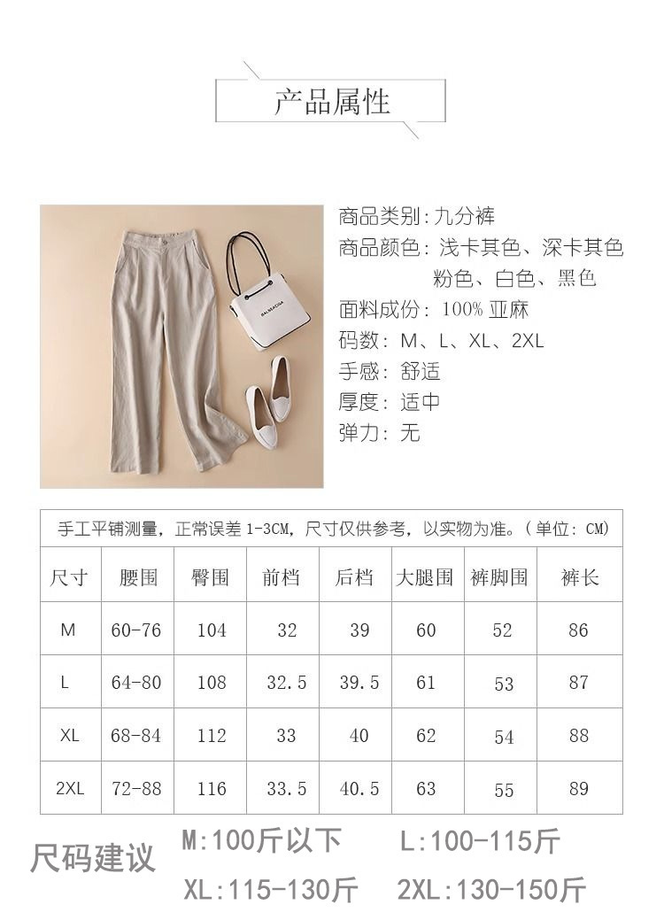 商品名称:(总)洛兰沙家居馆【只代发】【只代发】 夏季休闲裤子时尚百搭女裤棉麻女装阔腿裤女高腰垂感宽松九分裤子