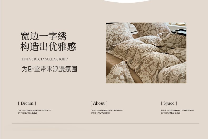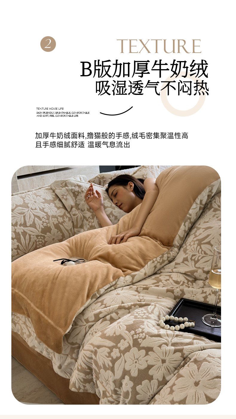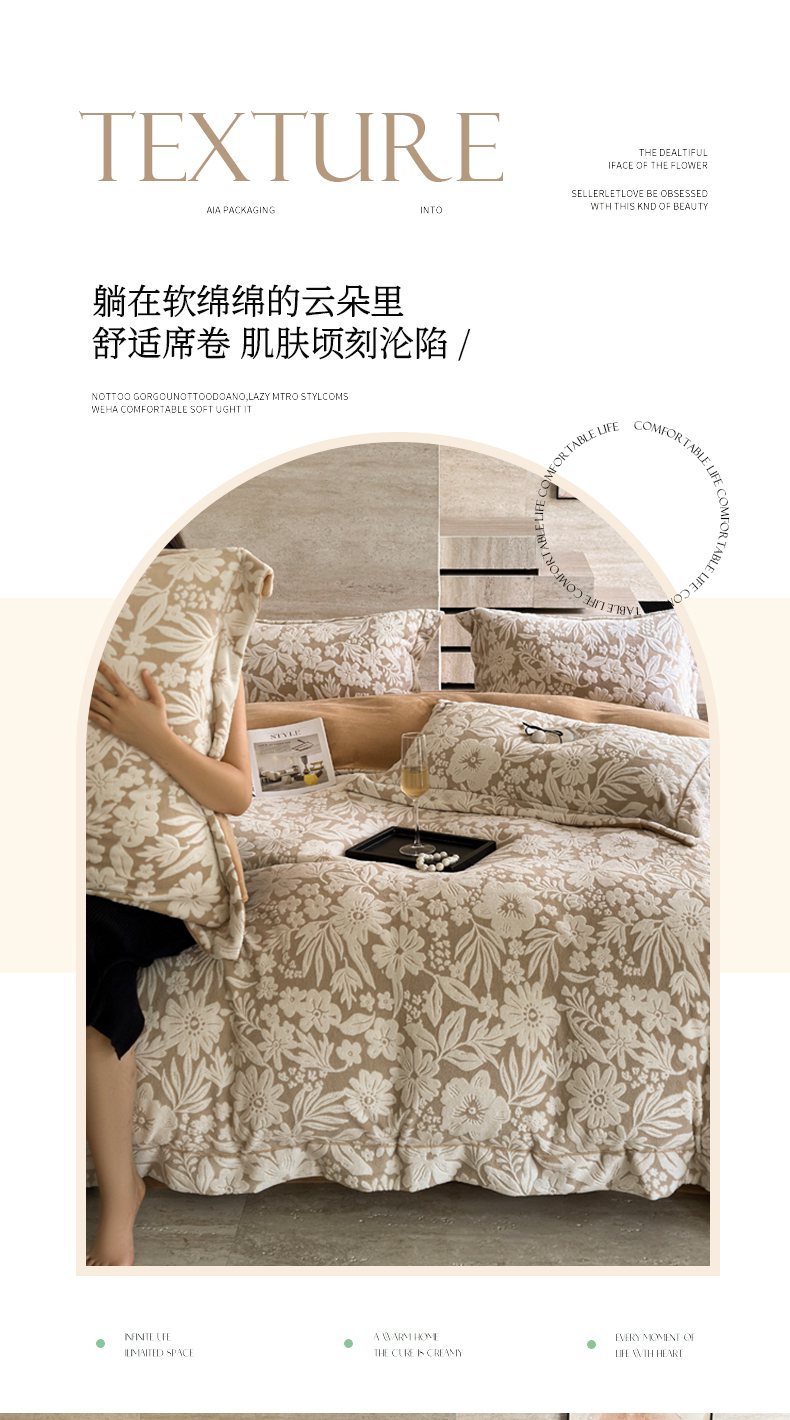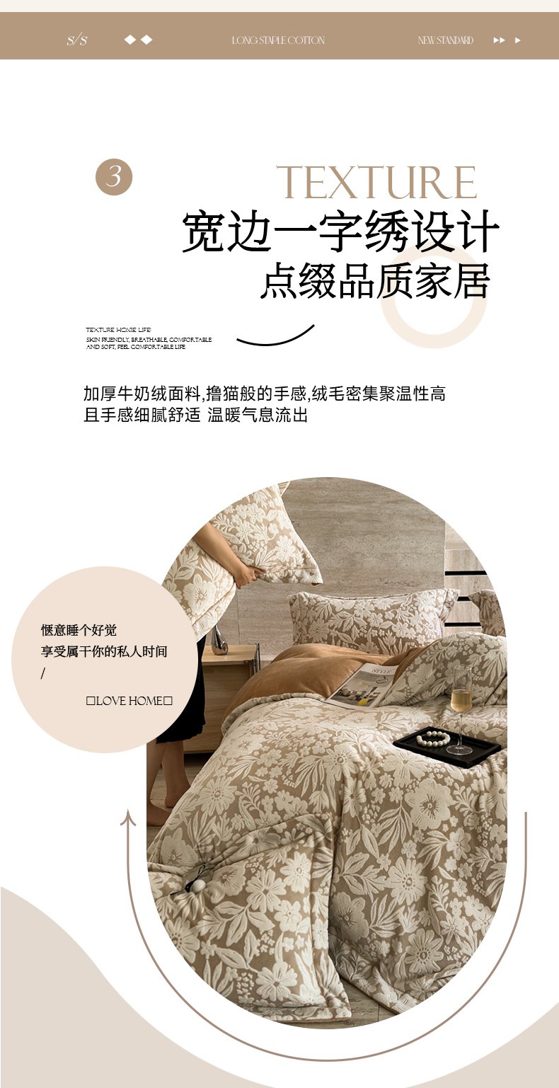 当前位置: 91家纺网 > 商品网购 > 床品套件 > 四件套 > 牛奶绒四件套 > 7V 2025新款A类5D雕花绒四件套高克重立体浮雕牛奶绒大宽边一字绣全工艺四件套 寻梦