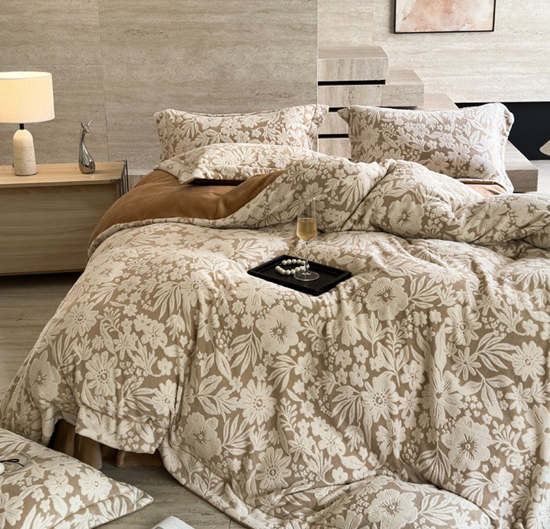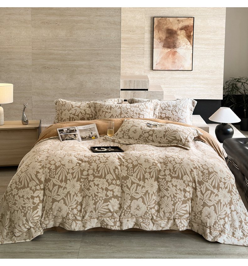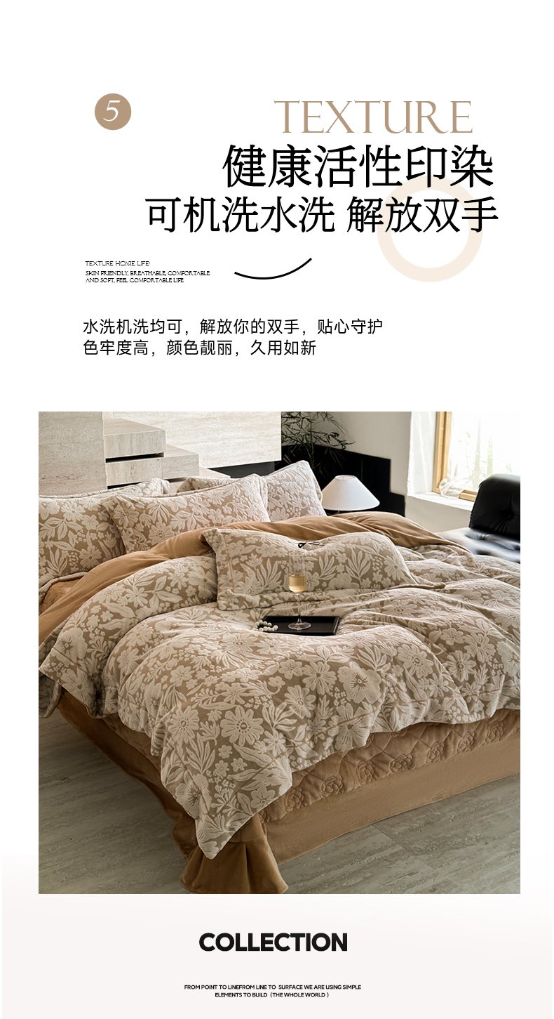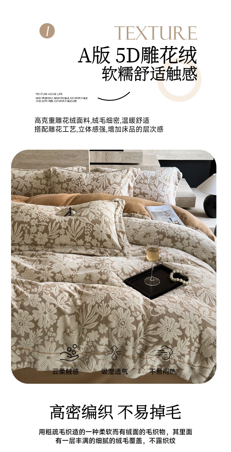 当前位置: 91家纺网 > 商品网购 > 床品套件 > 四件套 > 牛奶绒四件套 > 7V 2025新款A类5D雕花绒四件套高克重立体浮雕牛奶绒大宽边一字绣全工艺四件套 寻梦