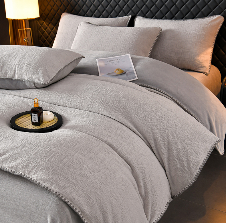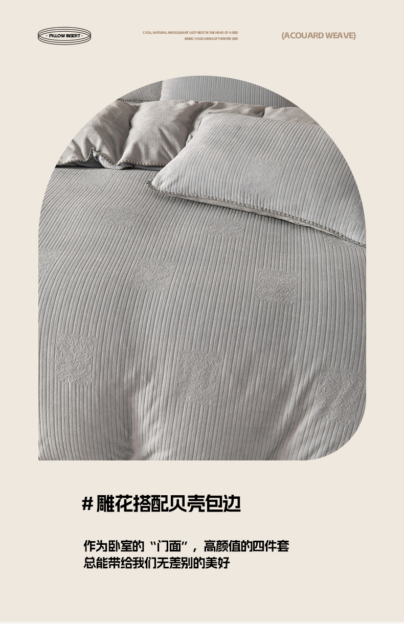 (总)菡宝2025新款工艺款贝壳边雕花绒简约良品风牛奶绒四件套-梵西系列 支持定做定制尺寸