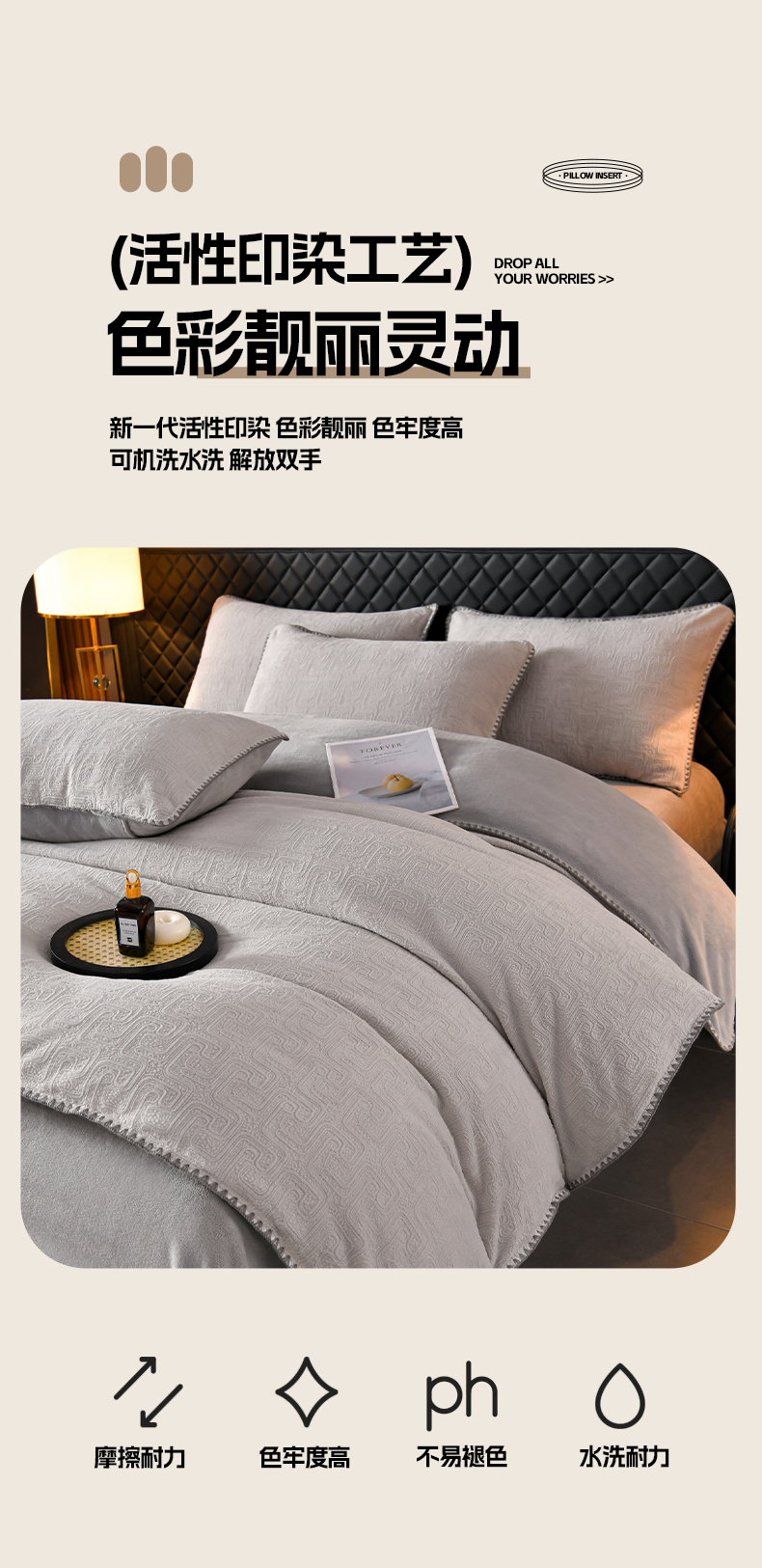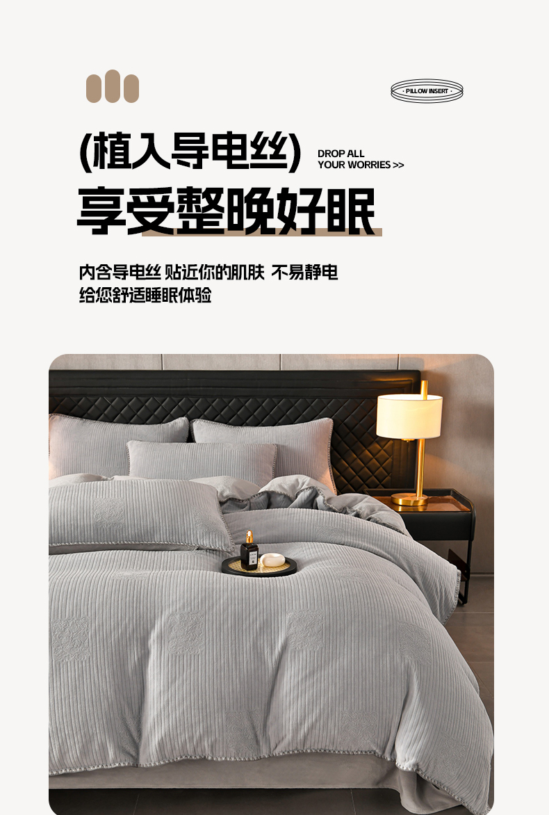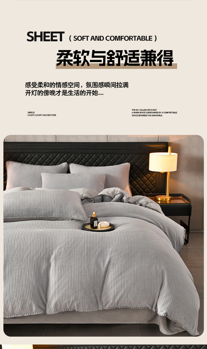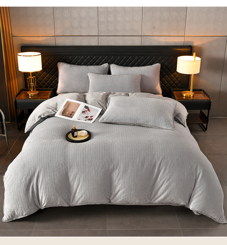 (总)菡宝 2025新款简约良品风牛奶绒四件套-查尔斯系列 支持定做定制尺寸,查尔斯-灰,查尔斯-卡其,卡伦