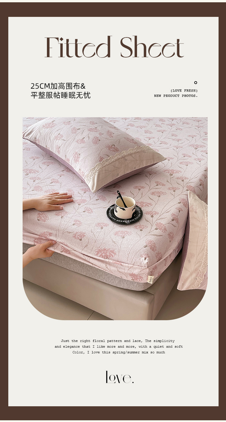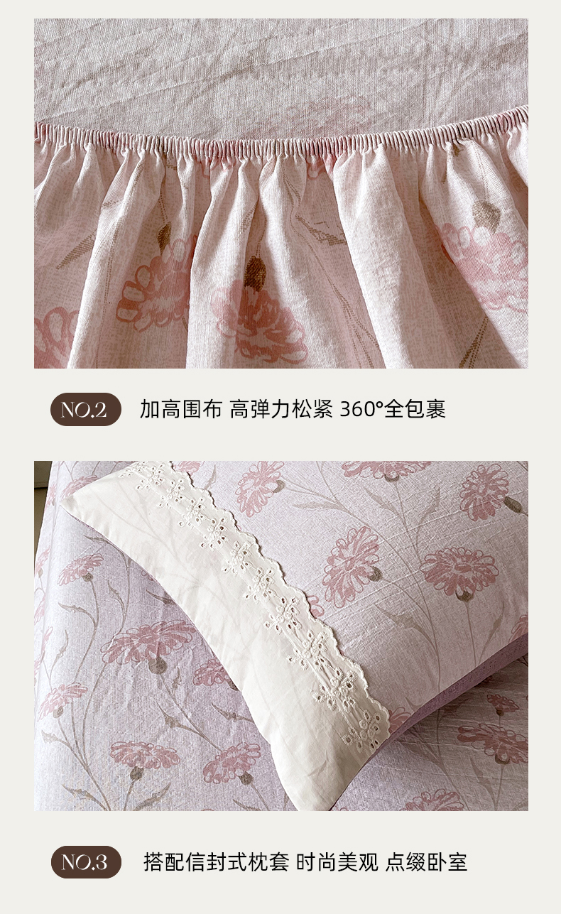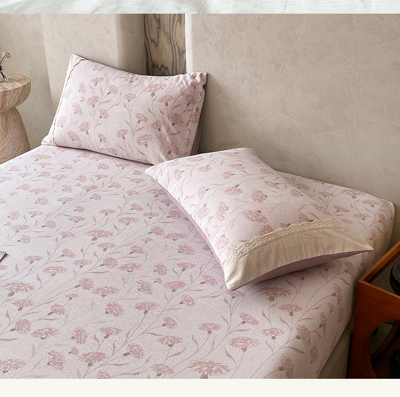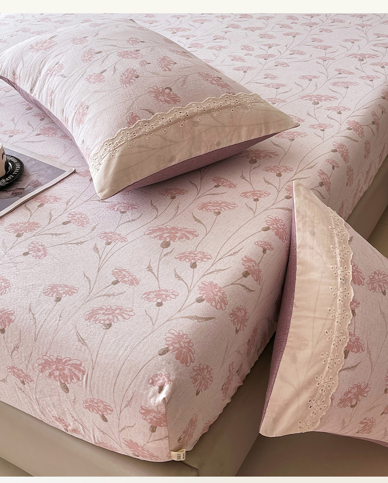 • 91家纺网 家纺一手货源 找家纺 丝芙妮家居(原乐视家纺) 2025新款全棉纯棉蕾丝花边原麻单品床笠单件床笠 春意漫漫