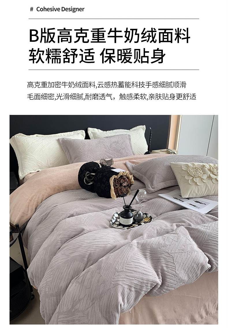 (总)奈萝家纺 2025新款加厚雕花绒牛奶绒四件套,艾美瑞粉,艾美瑞紫,繁花倾心绿,蝴蝶结绿,蝴蝶之恋粉,画意枝头粉,画意枝头灰,奇想粉,奇想蓝,素青灰,叶叶细雨粉,叶叶细雨灰,叶叶细雨绿,樱花草蓝灰,羽毛灰,羽毛蓝,云海豆沙,云海灰,云海咖,仲夏晨歌咖