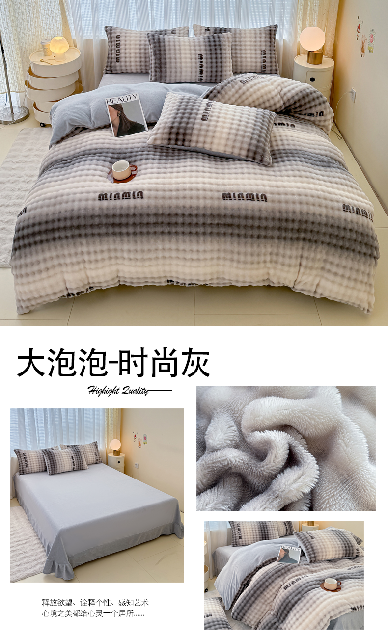 (总)(买家秀 爆款不断货)A类母婴级高克重獭兔绒四件套牛奶绒四件套牛奶绒四件套纯色韩版荷叶边兔毛绒四件套,泡泡粉玉,泡泡-滨海绿,泡泡-摩登卡,泡泡高级灰,泡泡卡其,泡泡奶白