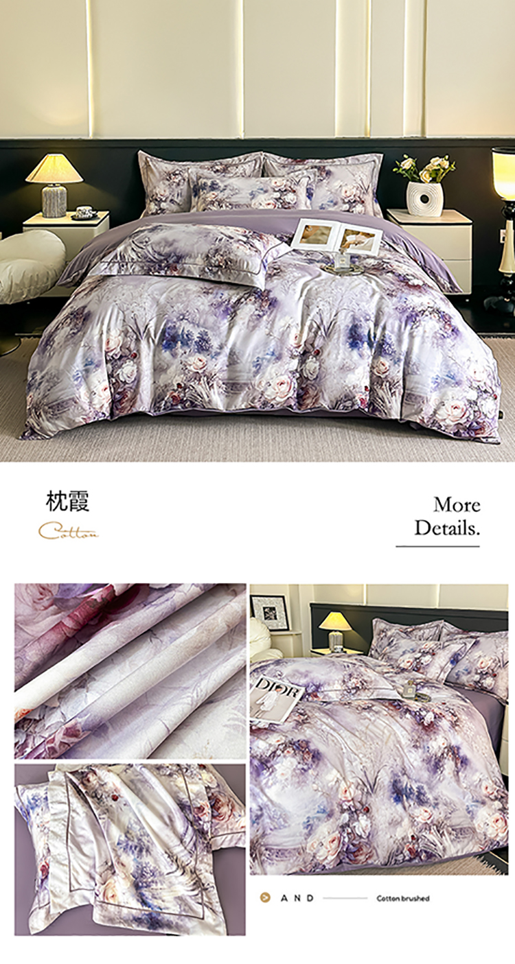 (总)棠颂家纺 2025新款法式锦棉缎数码印花四件套,风月,霓裳