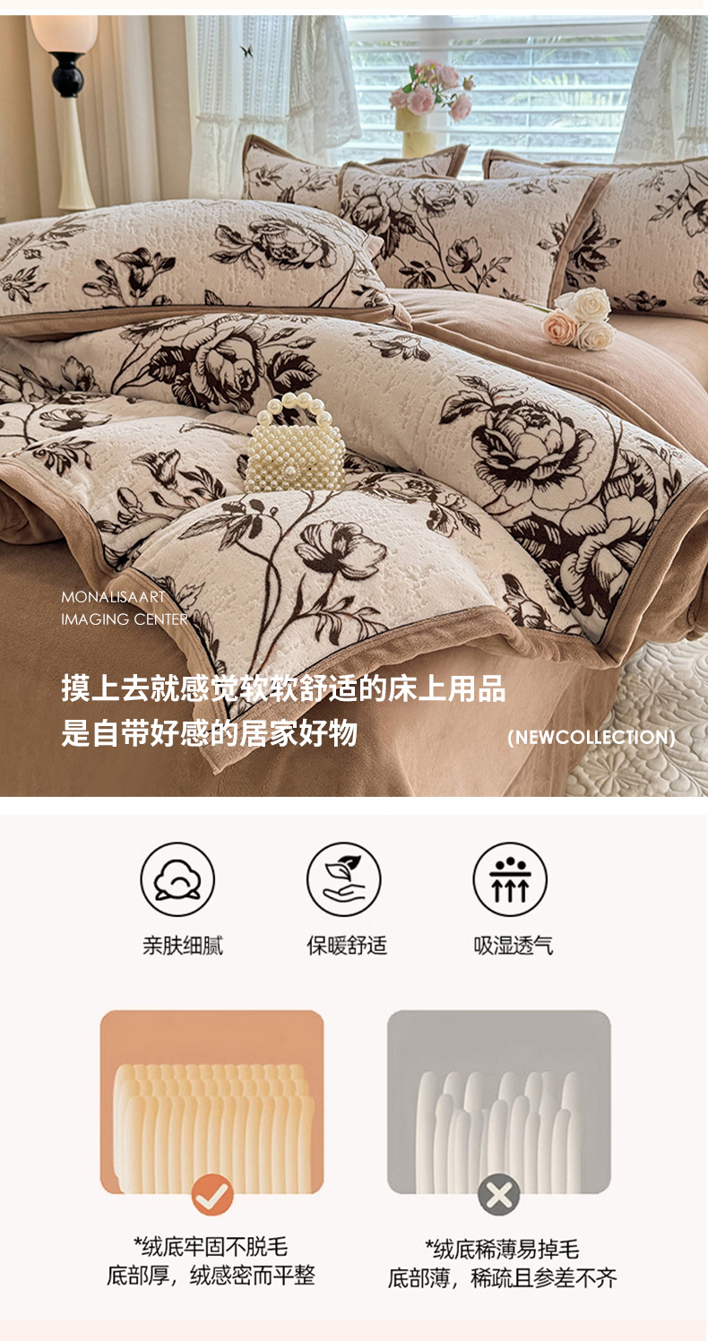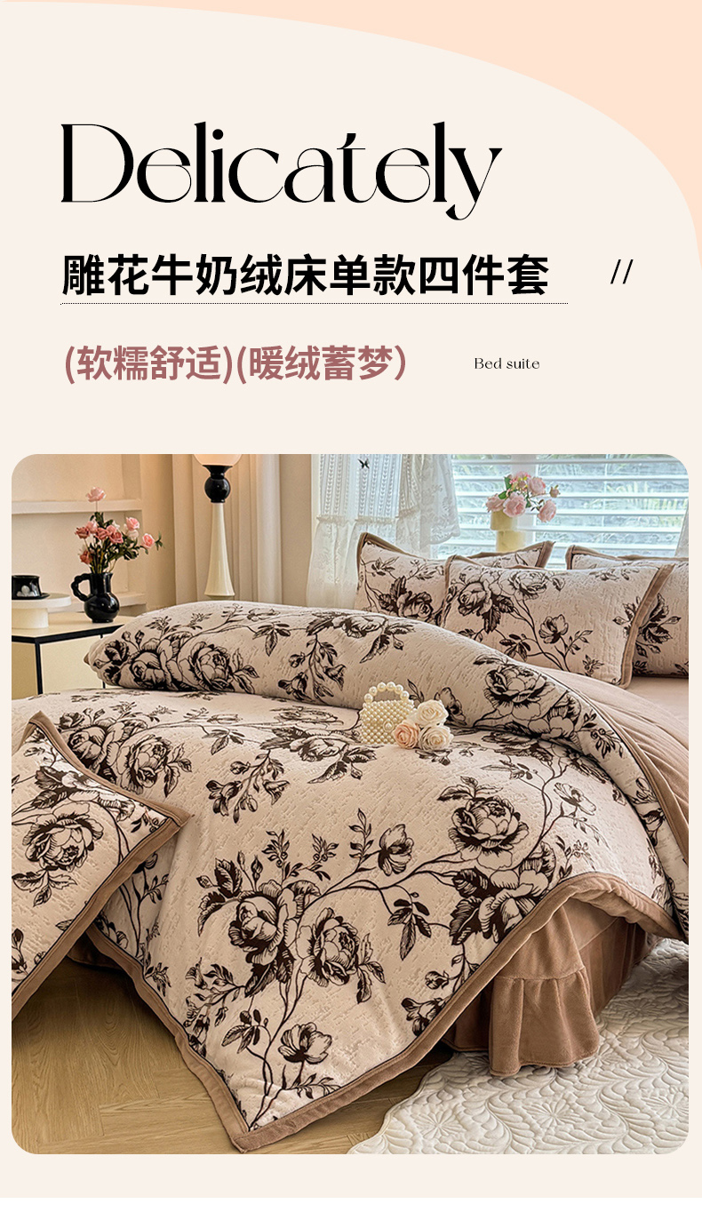商品名称:韩约家纺 2025新款雕花牛奶绒法式床单款四件套 澜庭