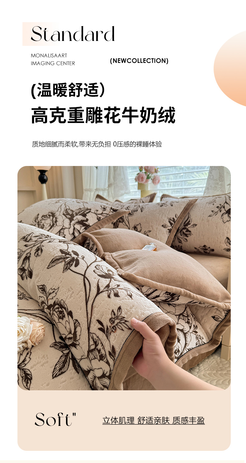 韩约家纺 2025新款雕花牛奶绒法式床单款四件套 澜庭