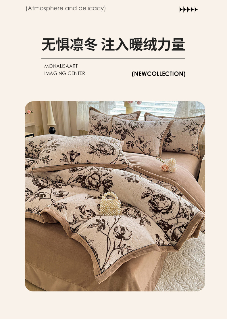 (总)韩约家纺 2024新款牛奶绒花边款印花四件套,豹纹时尚,繁花,格调,花瑾,酷派熊,乐莹,丽贝卡,莉亚,米妮(粉),米妮(灰),妮点爱心,如伊,婷语花间,远黛