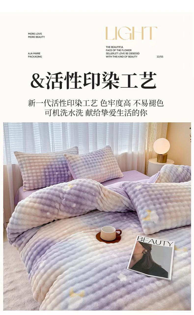 当前位置: 91家纺网 > 商品网购 > 床品套件 > 四件套 > 牛奶绒四件套 > 小叮当家纺仓储工厂店 2025新款印花兔兔绒牛奶绒大泡泡四件套 大泡泡-时尚灰