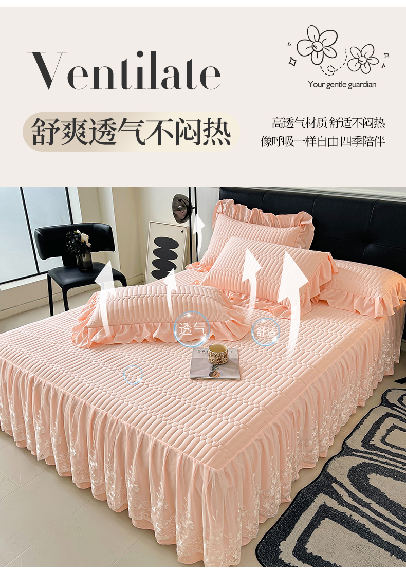 (总)好儿喜家纺 2024新款伊芙琳凉席床裙三件套,浅绿,橄榄绿,奶白,浅粉,浅蓝