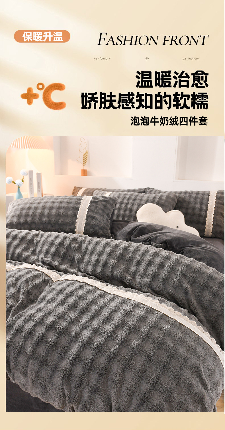当前位置: 91家纺网 > 商品网购 > 床品套件 > 四件套 > 牛奶绒四件套 > 米瑞娜 2025新款泡泡绒四件套 泡泡-深灰
