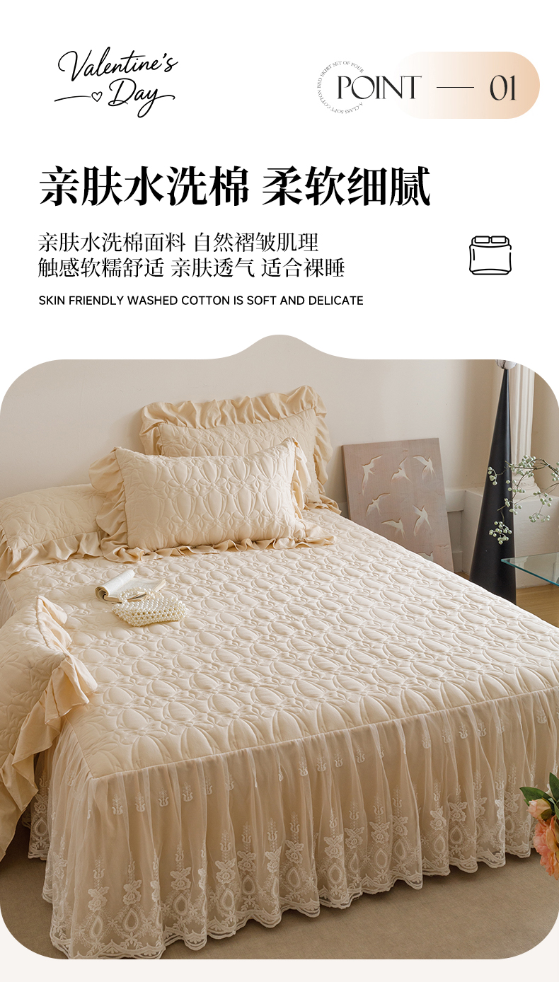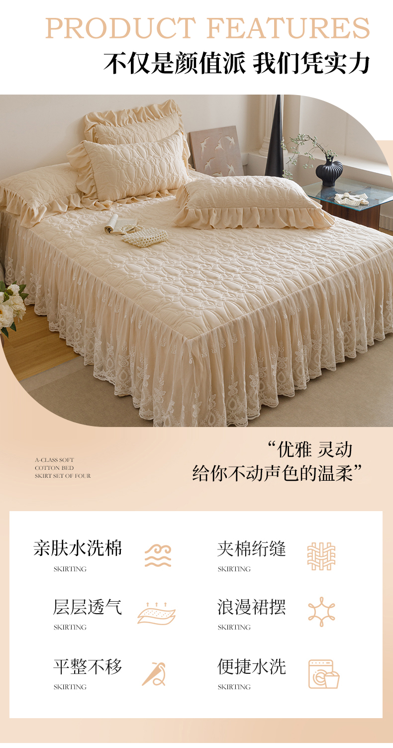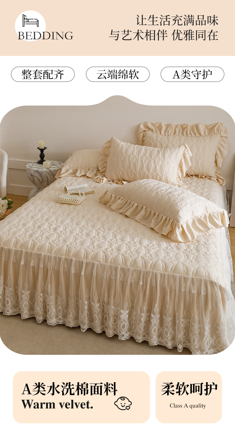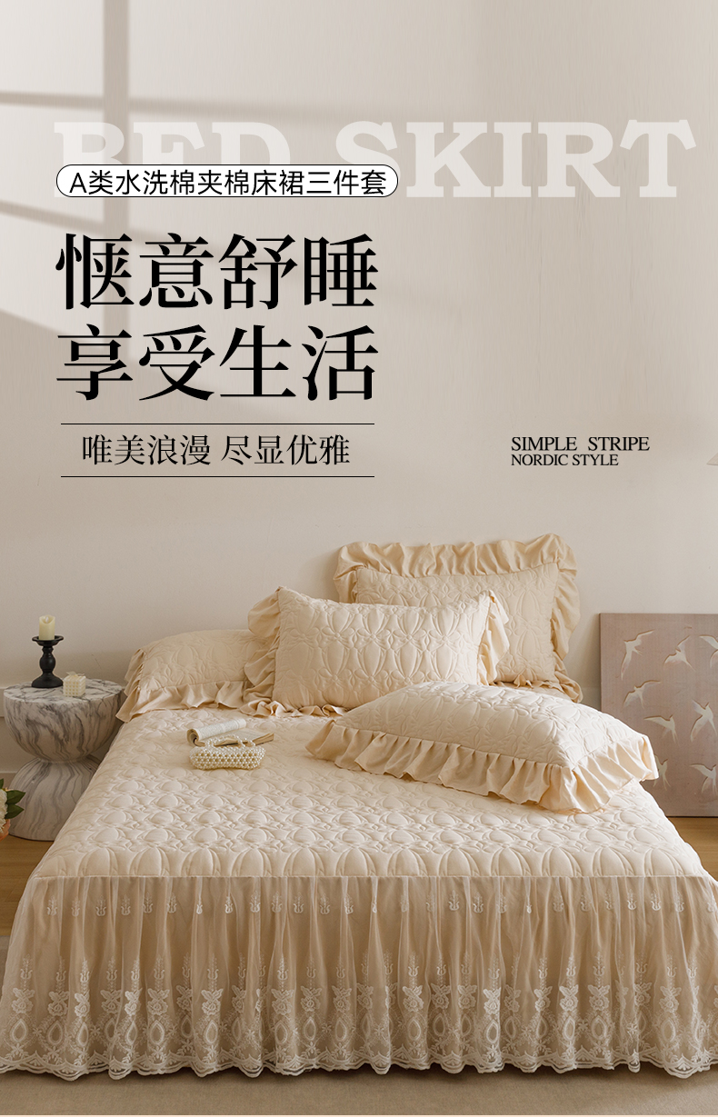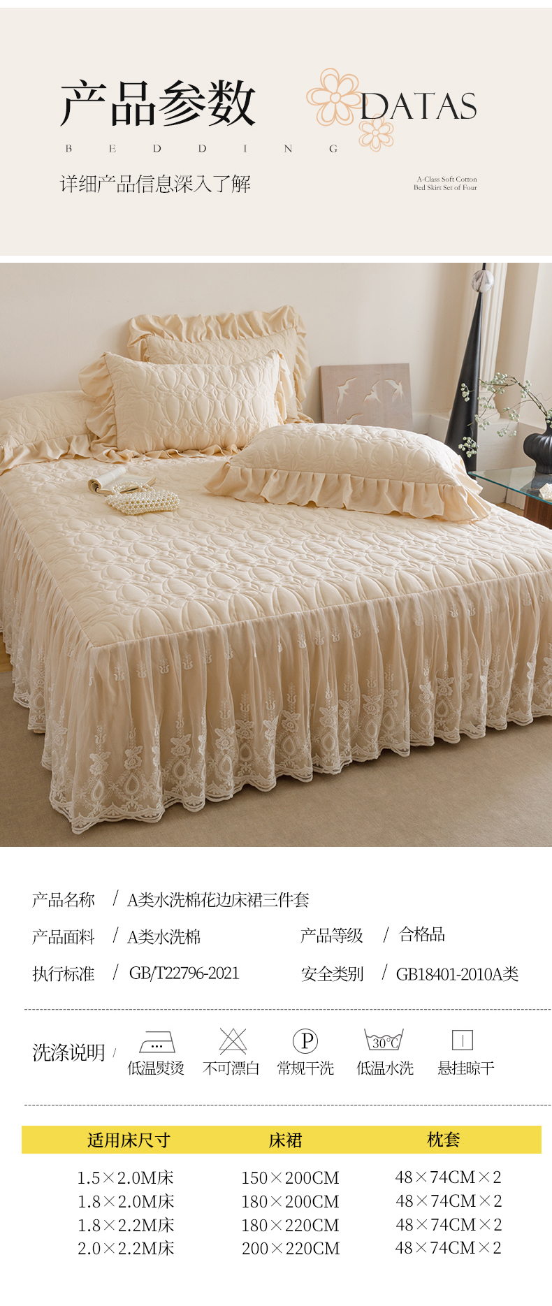 当前位置: 91家纺网 > 商品网购 > 床品套件 > 四件套 > 牛奶绒四件套 > 好儿喜家纺 2025新款A类水洗棉床裙三件套-梦语系列 梦语-香槟