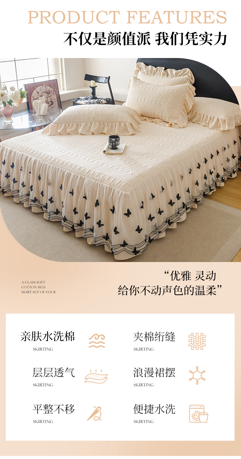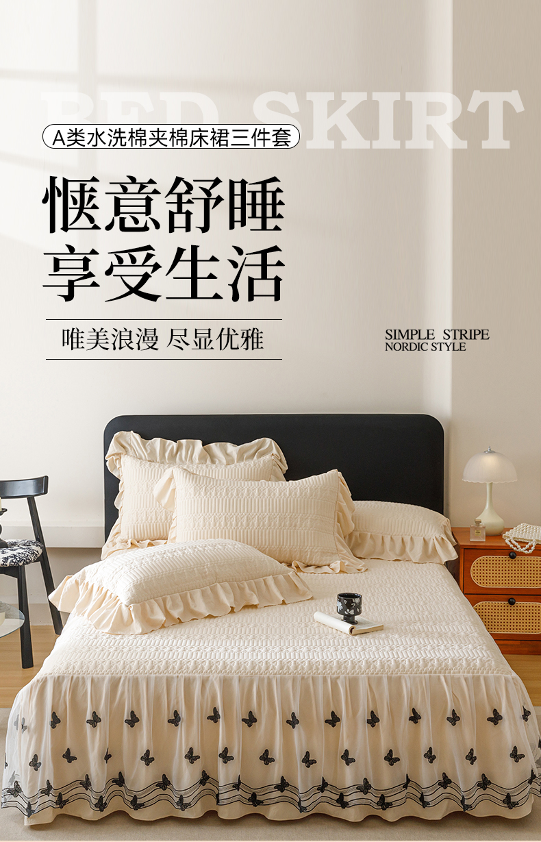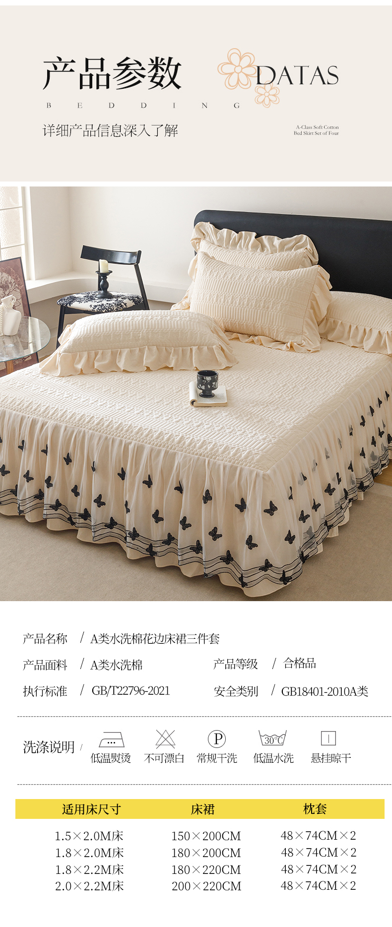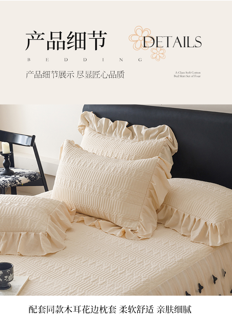 当前位置: 91家纺网 > 商品网购 > 床品套件 > 四件套 > 牛奶绒四件套 > 好儿喜家纺 2025新款A类水洗棉床裙三件套-凝香系列 凝香-香槟