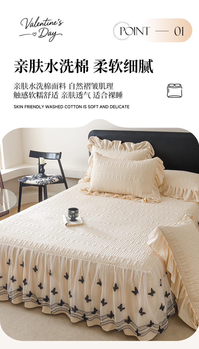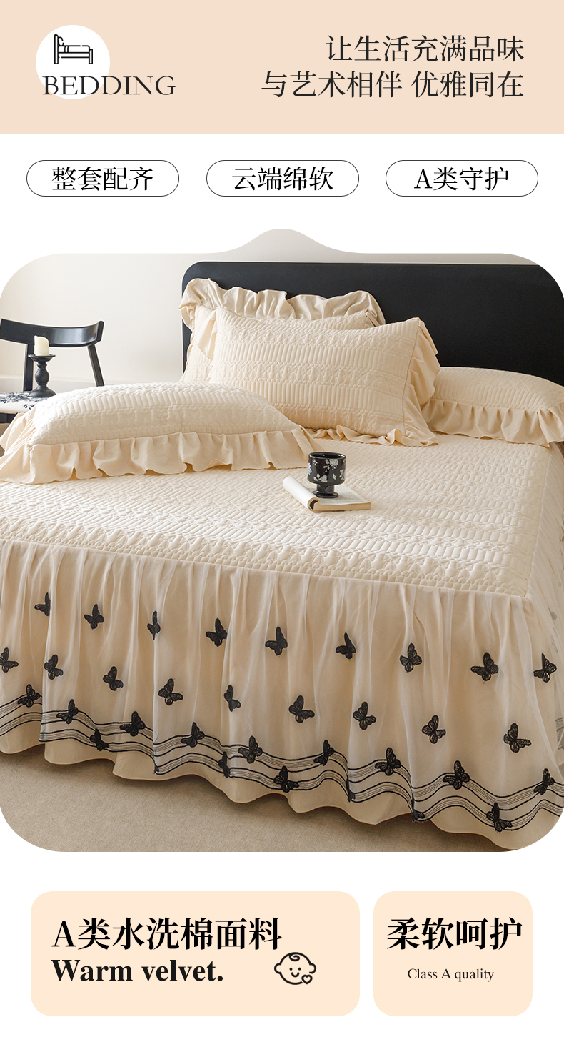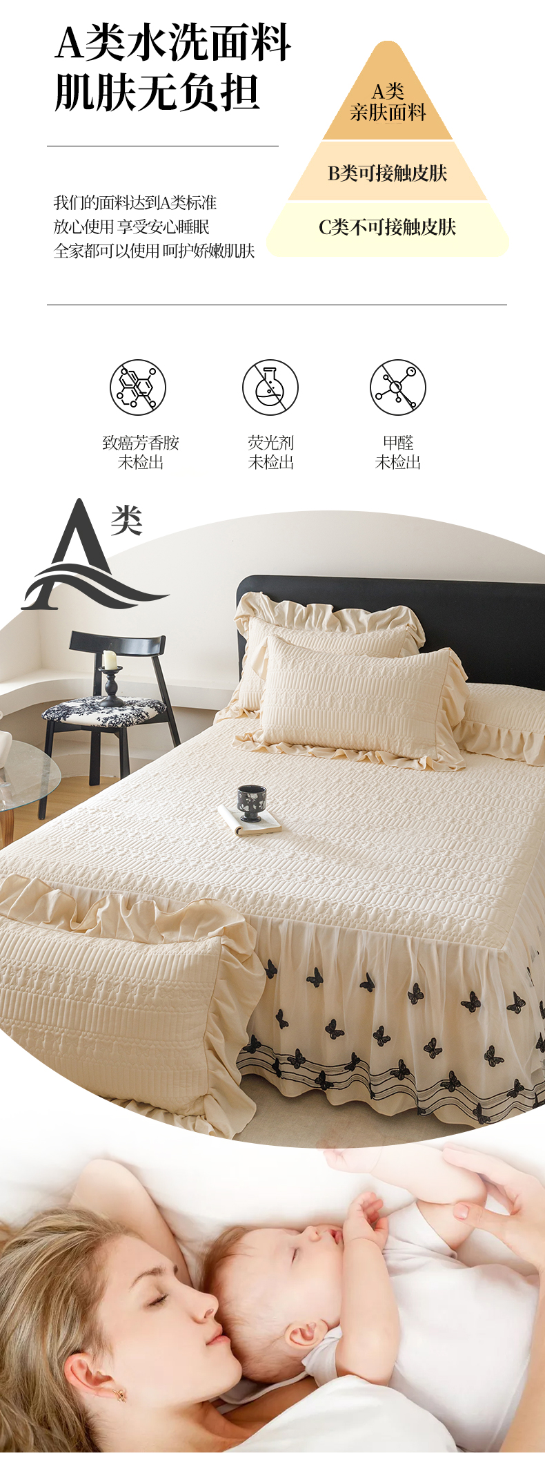 当前位置: 91家纺网 > 商品网购 > 床品套件 > 四件套 > 牛奶绒四件套 > 好儿喜家纺 2025新款A类水洗棉床裙三件套-凝香系列 凝香-香槟