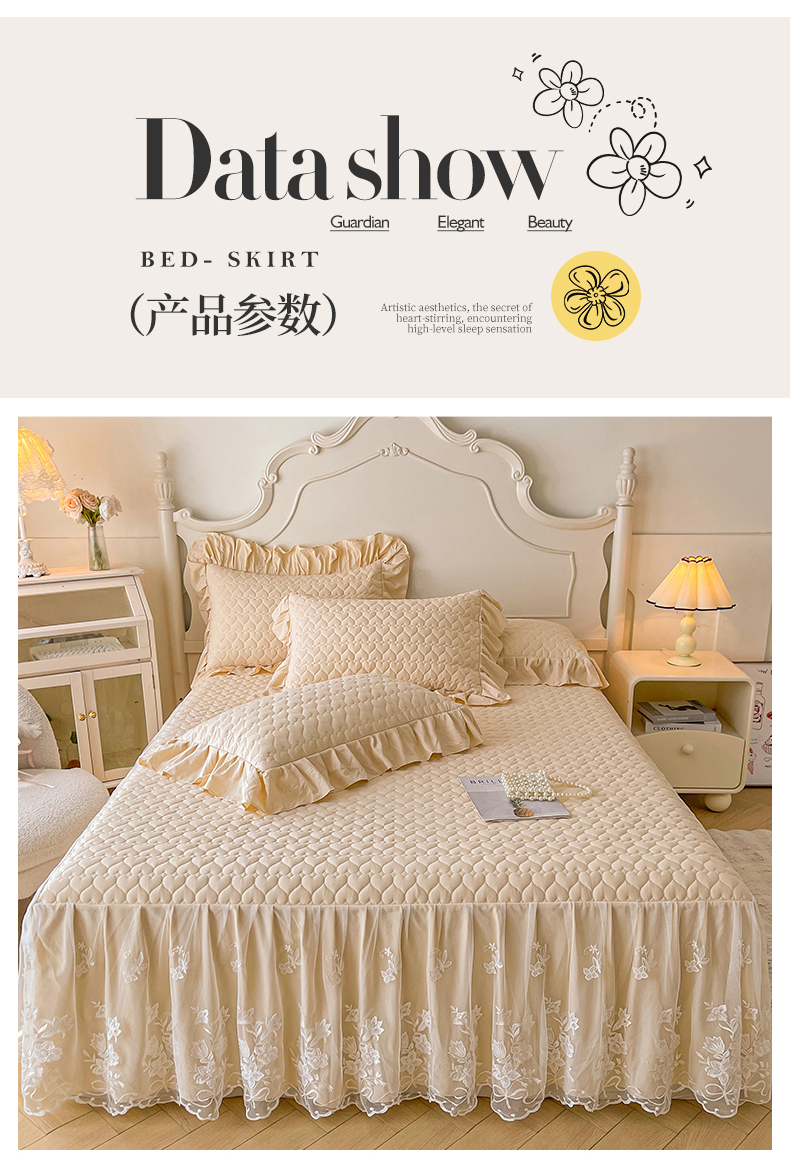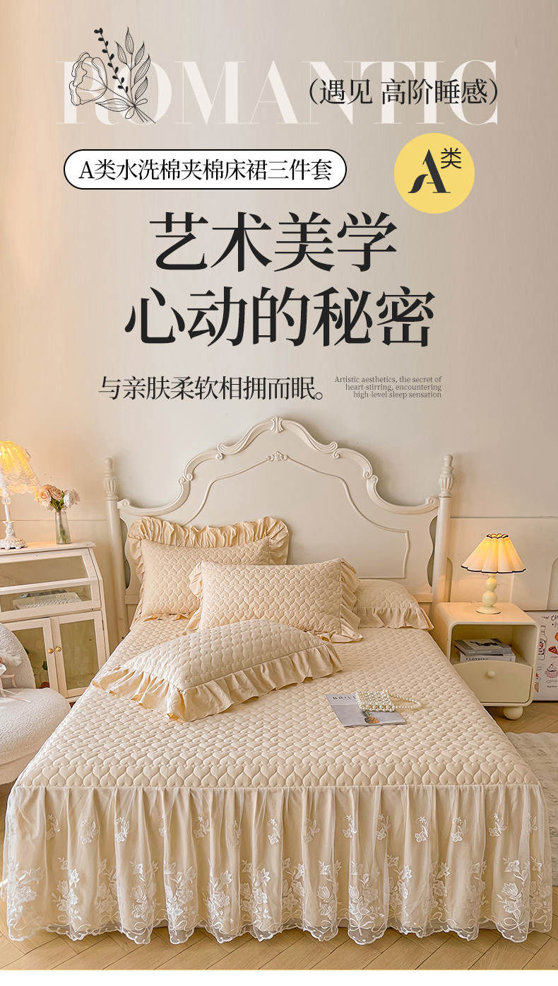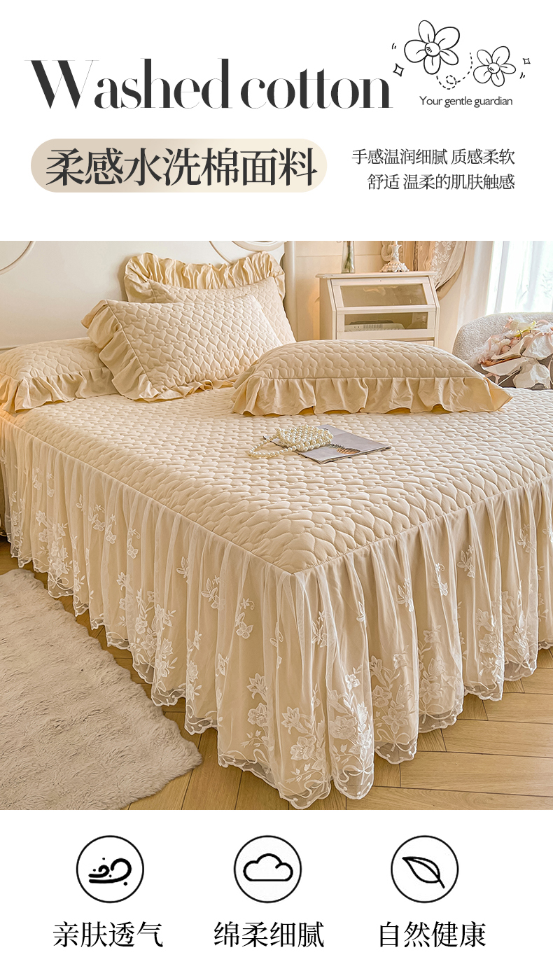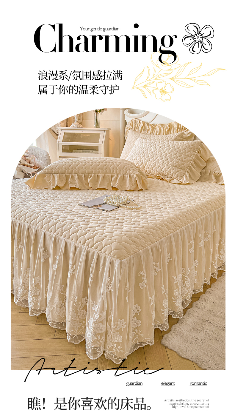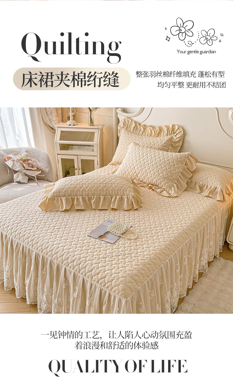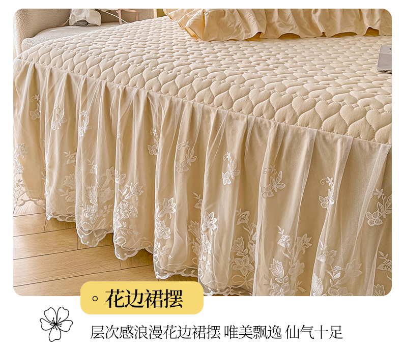当前位置: 91家纺网 > 商品网购 > 床品套件 > 四件套 > 牛奶绒四件套 > 好儿喜家纺 2025新款A类水洗棉床裙三件套-心语系列 心语-香槟