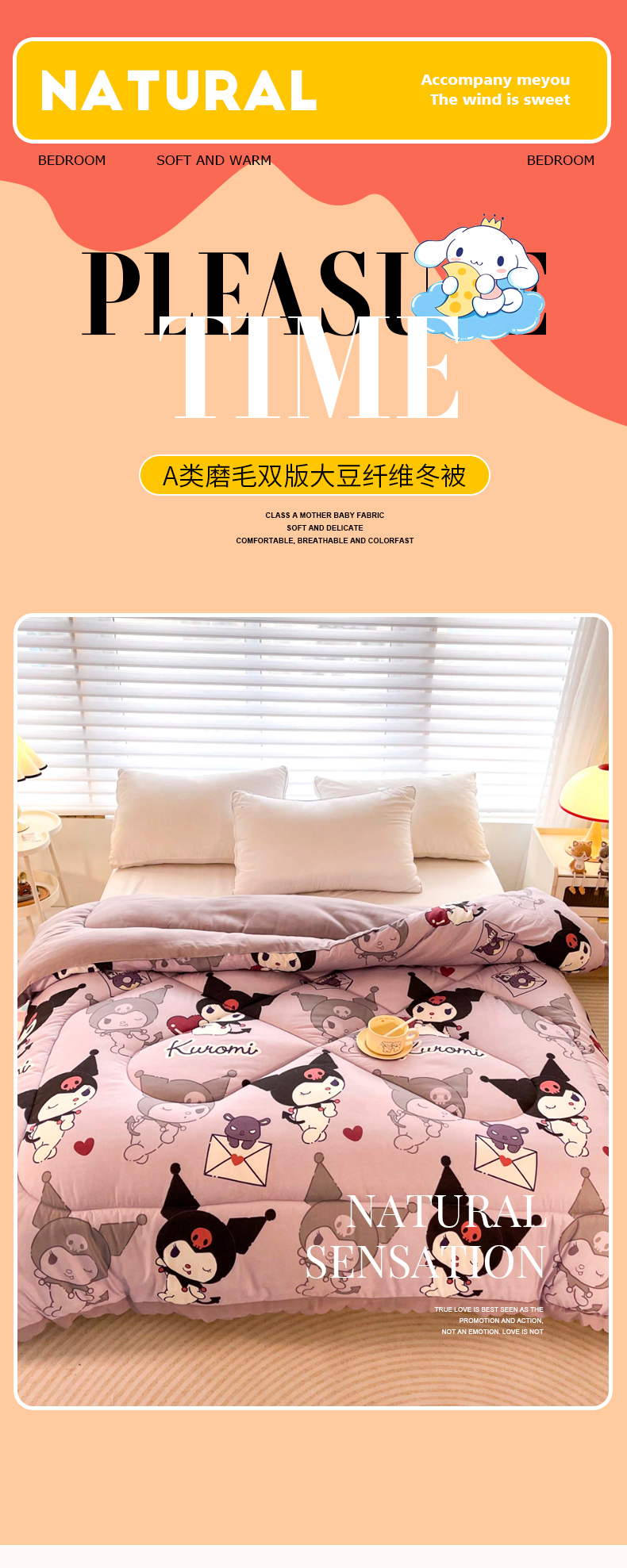 • 91家纺网 家纺一手货源 找家纺 (总)一电 2025新款双面牛奶绒被套单件150x200儿童加厚法兰珊瑚绒被罩200x230冬季-第三批,公主库洛米,天使库洛米,甜筒库洛米,小兔子,圆点库洛米