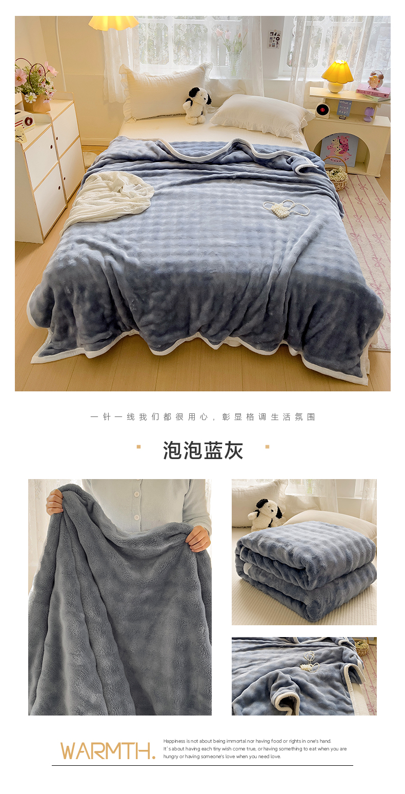 商品名称:启发 2025新款泡泡牛奶绒毛毯 泡泡蓝灰