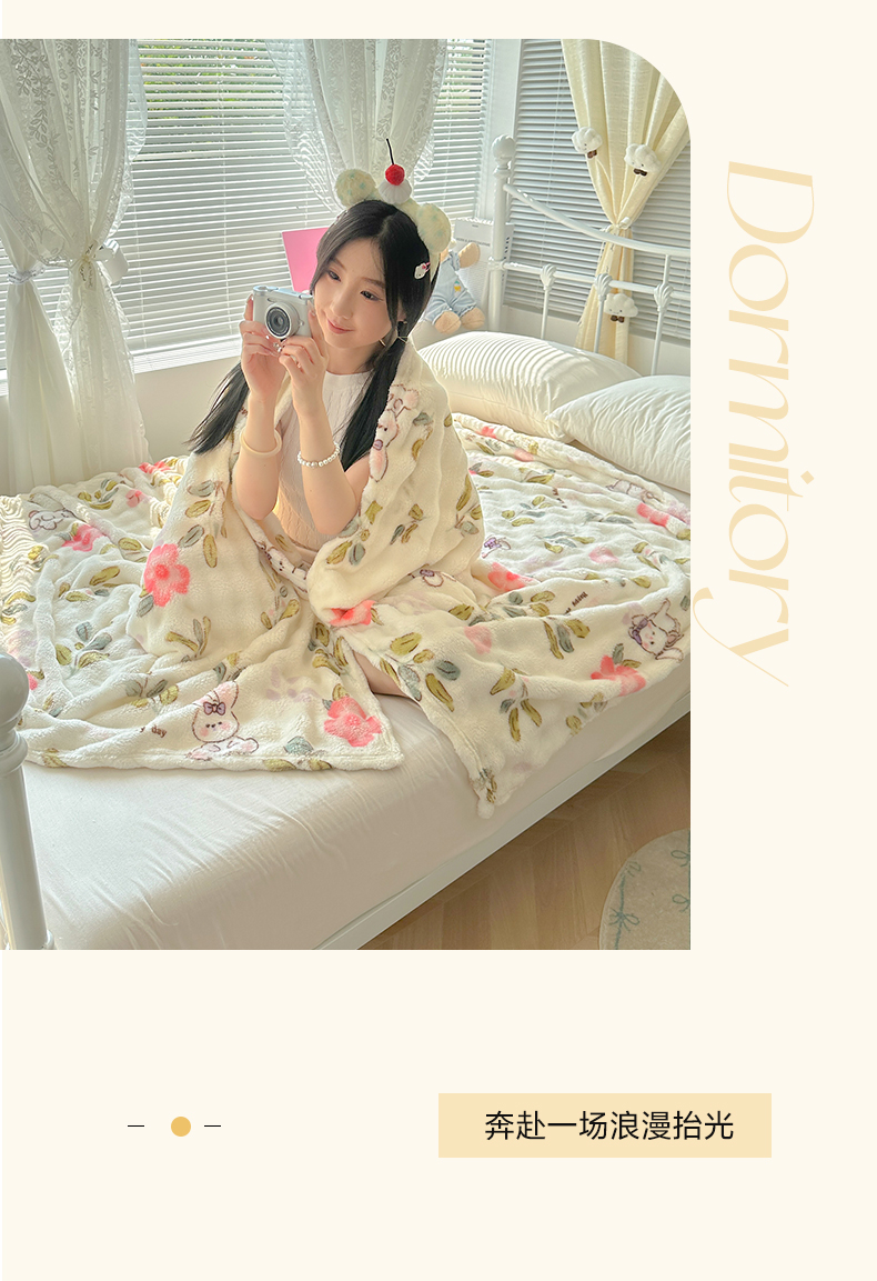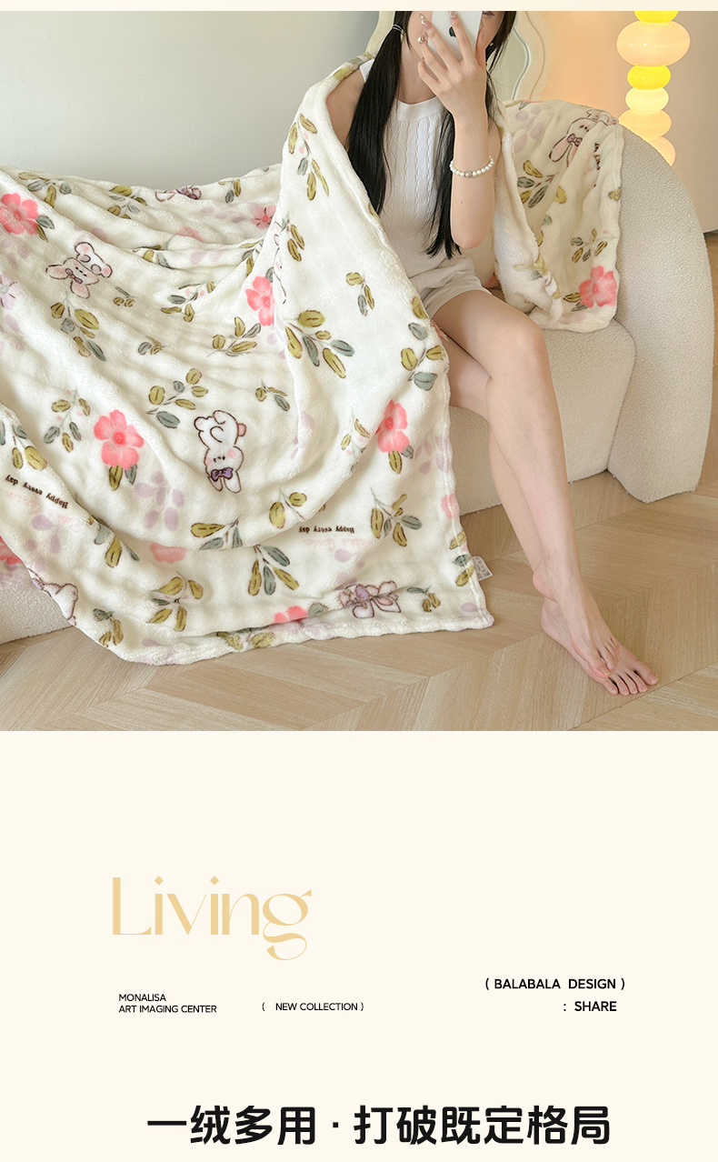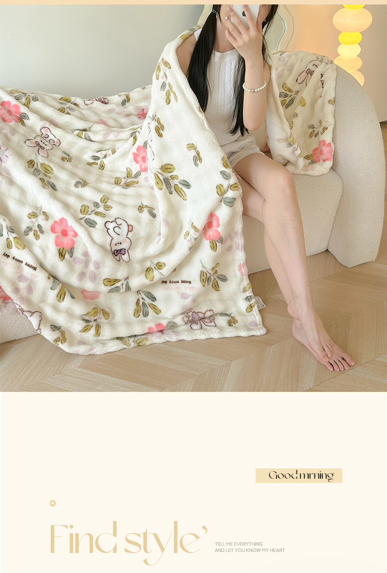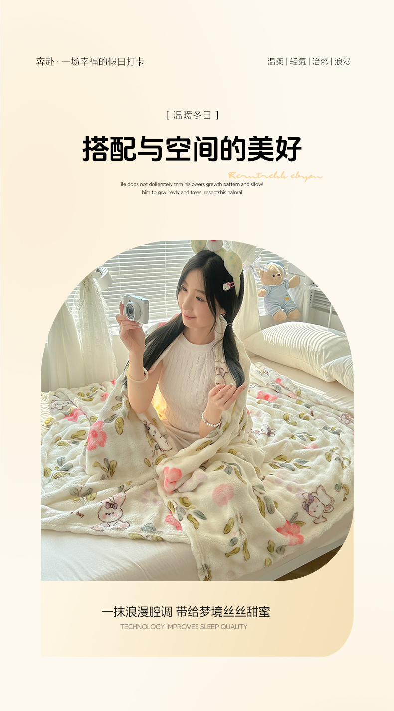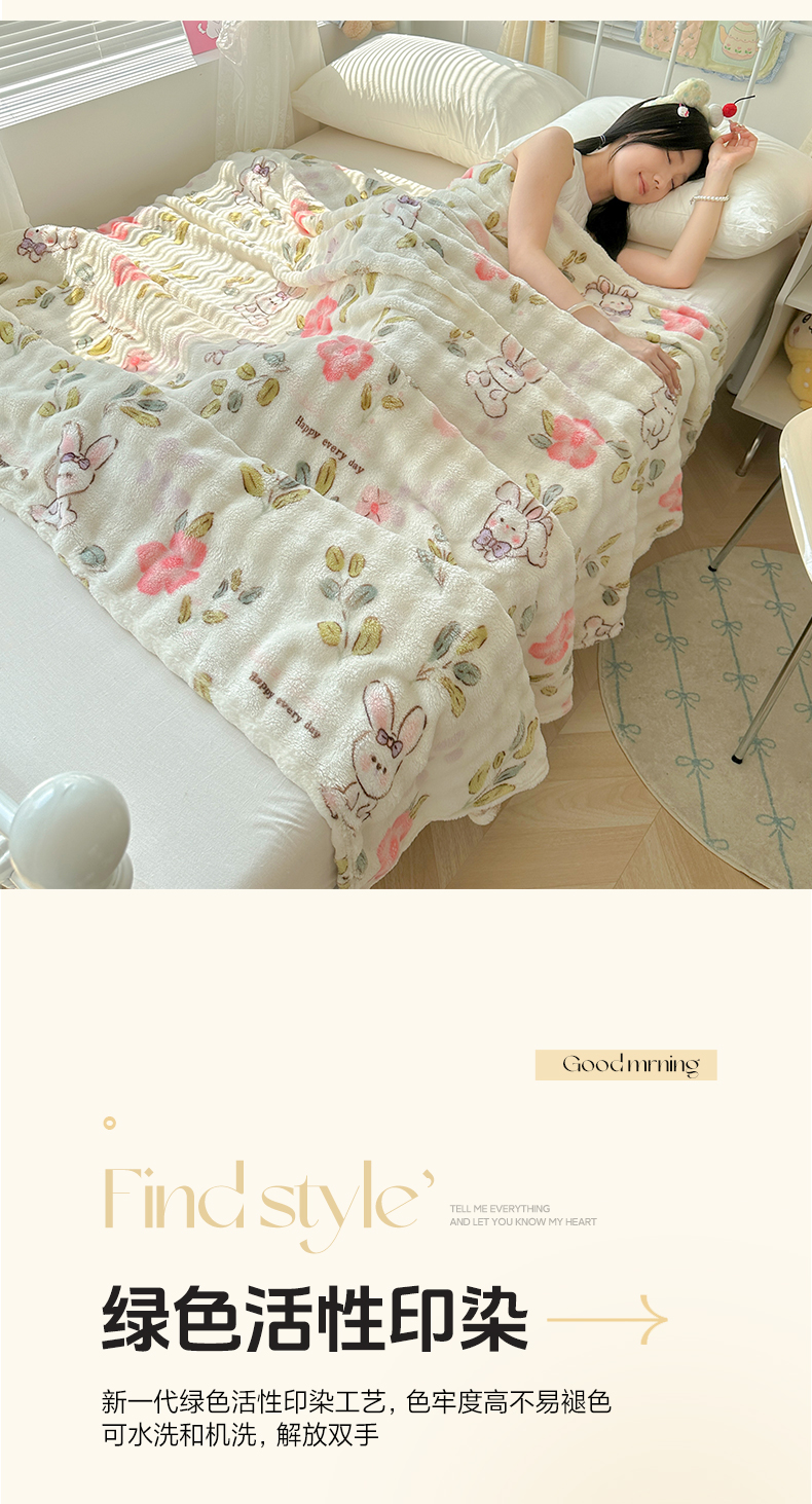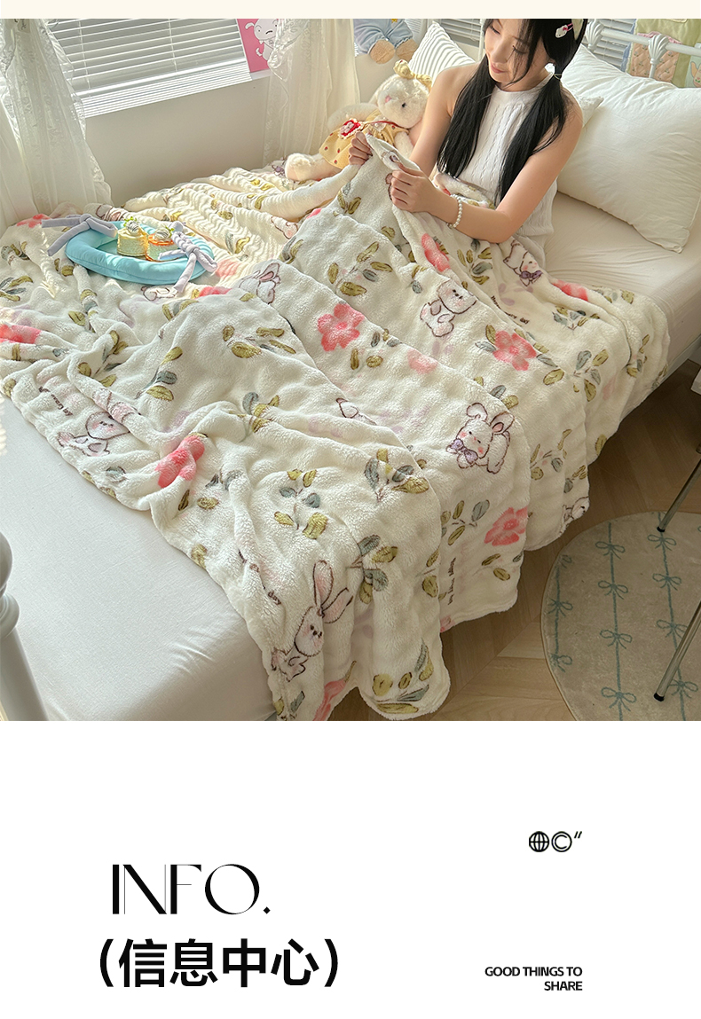 韩巢家纺 2025新款高克重泡泡绒毛毯多功能牛奶绒毯子支持跨境电商 青青小兔