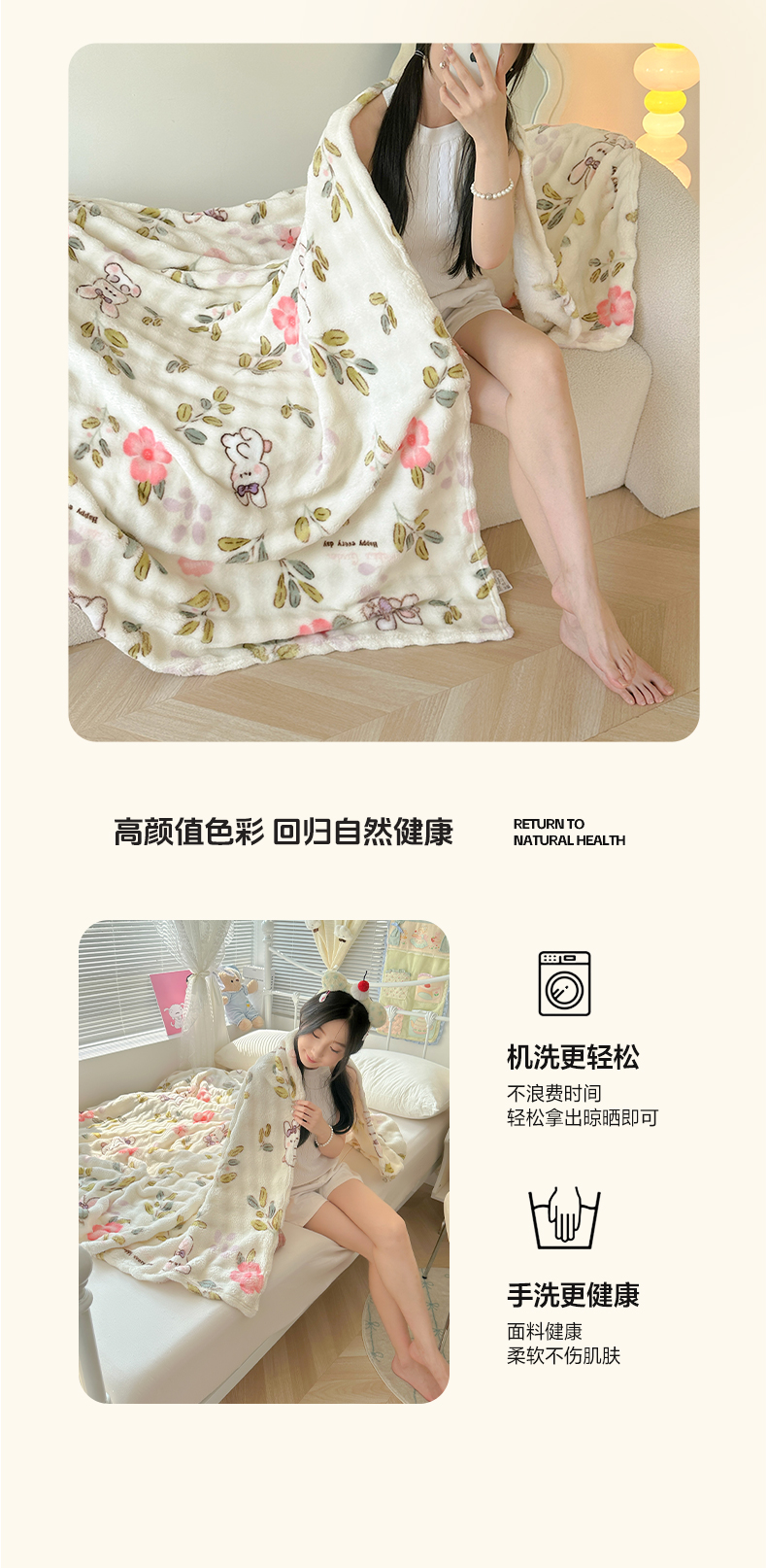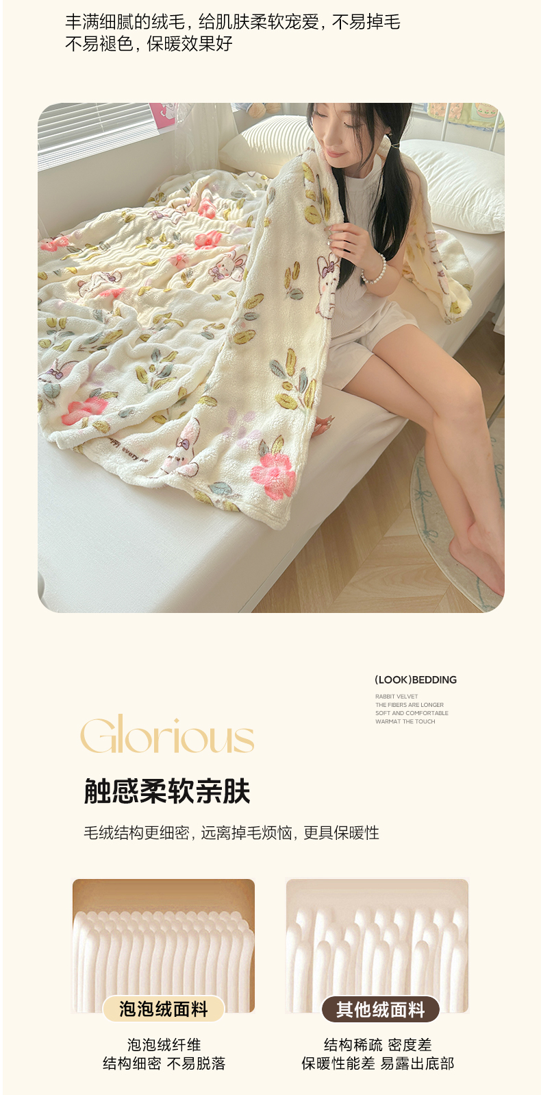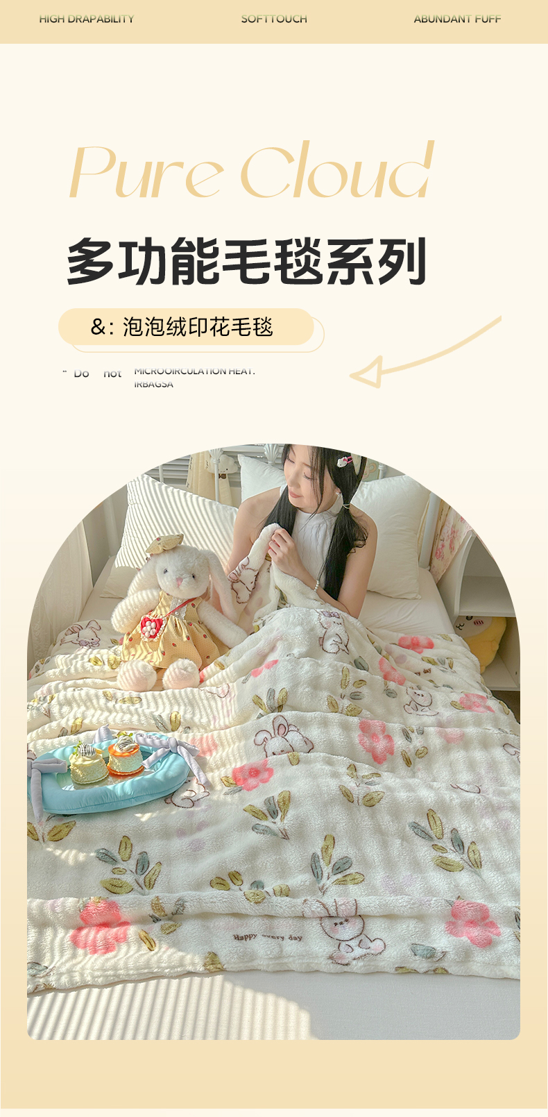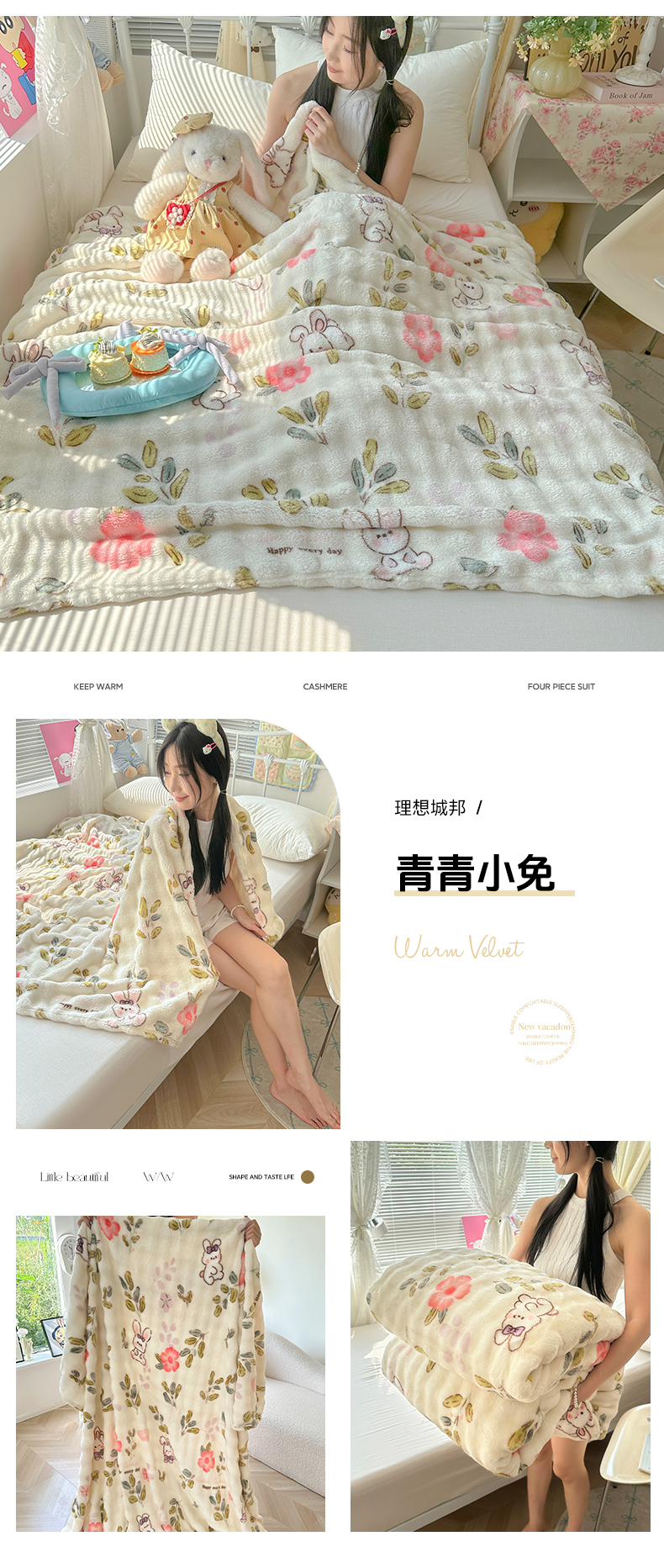 商品名称:韩巢家纺 2025新款高克重泡泡绒毛毯多功能牛奶绒毯子支持跨境电商 青青小兔