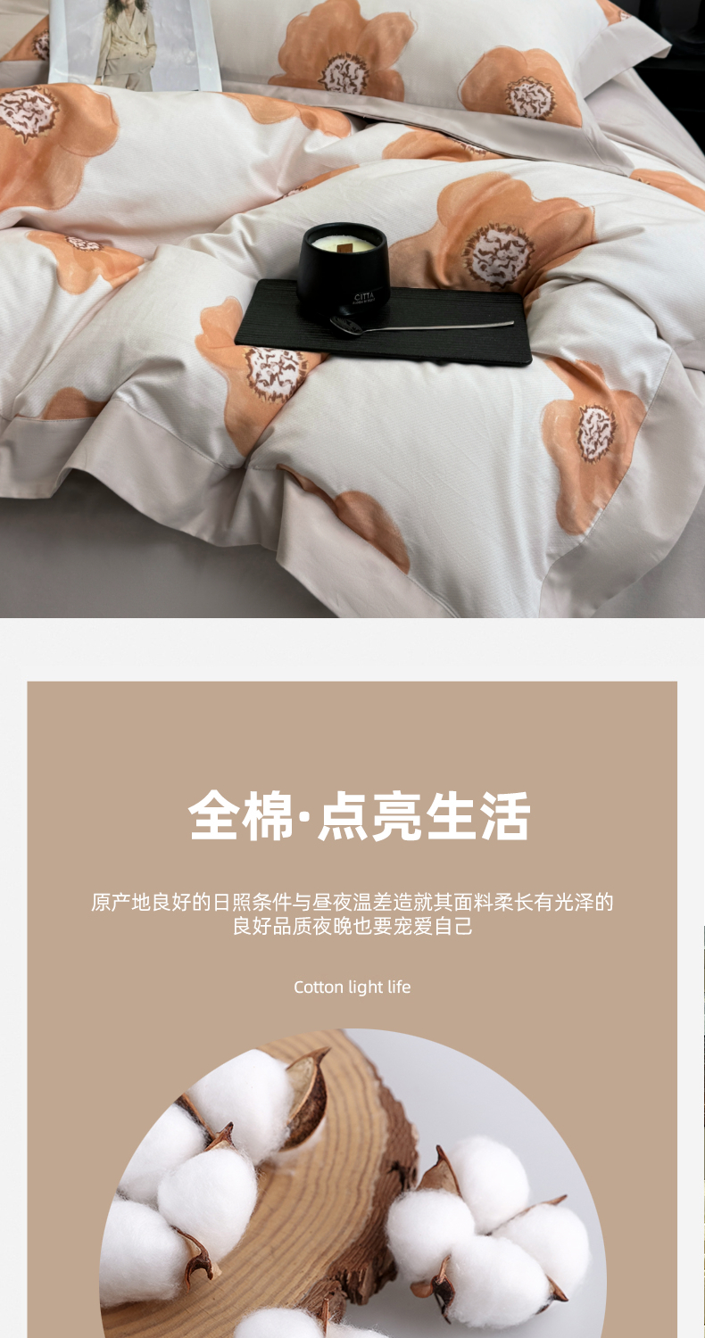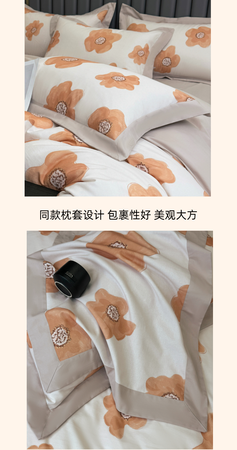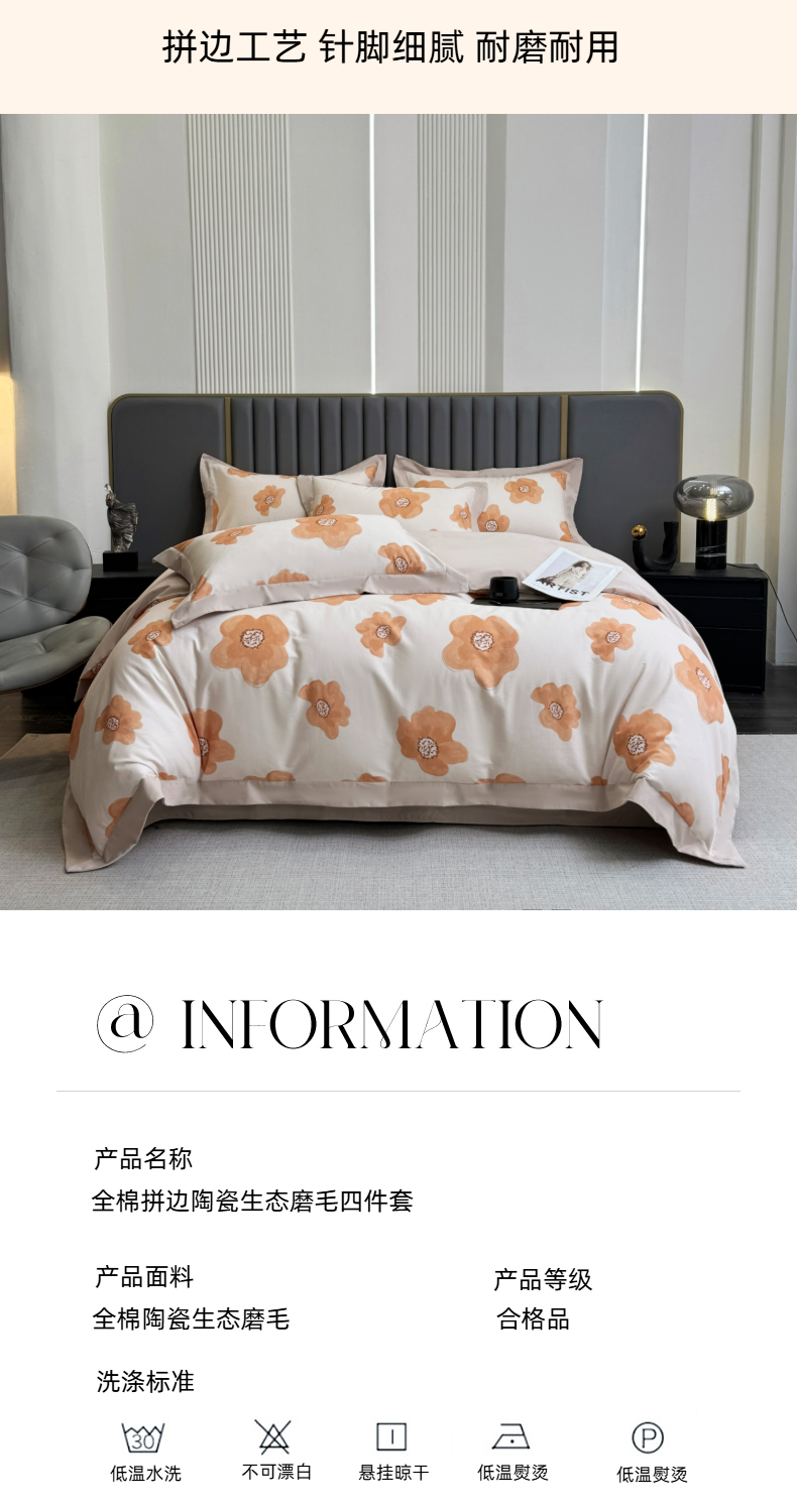 (总)乐蔻家纺 2025新款全棉拼边陶瓷生态磨毛四件套,春苑 米,格意,花蔓,花棠 米,梦园 绿,浅梦 米驼,倾语 灰,柔黛 豆沙,素暖 米,叶迹 绿,余生浅茉 米,悦野 米