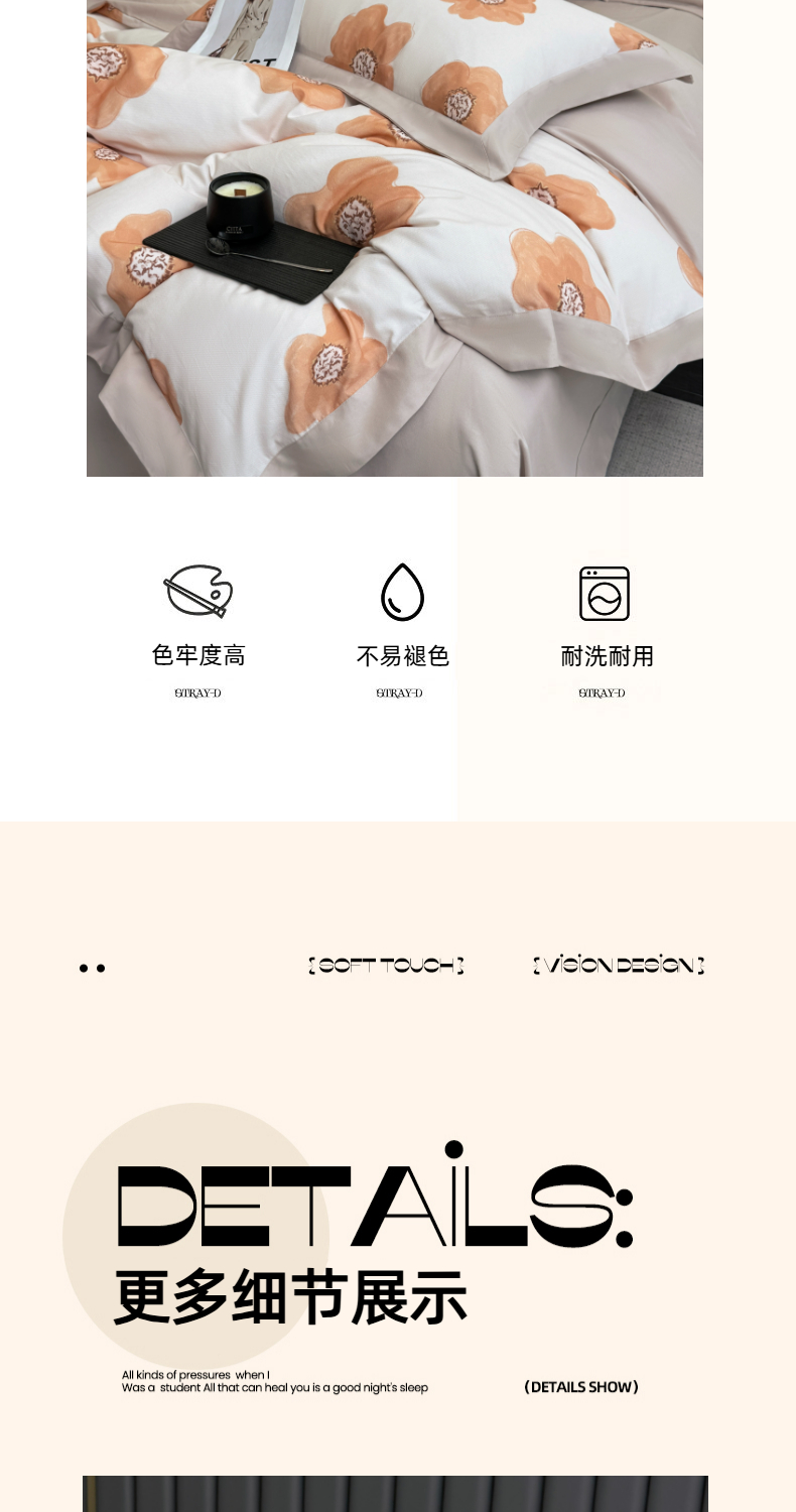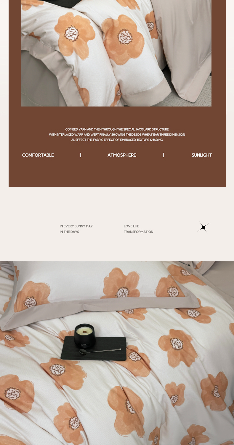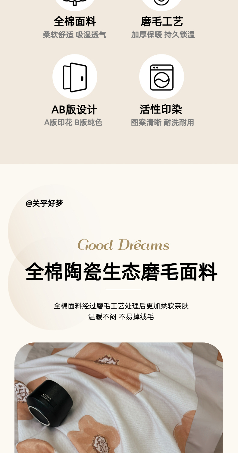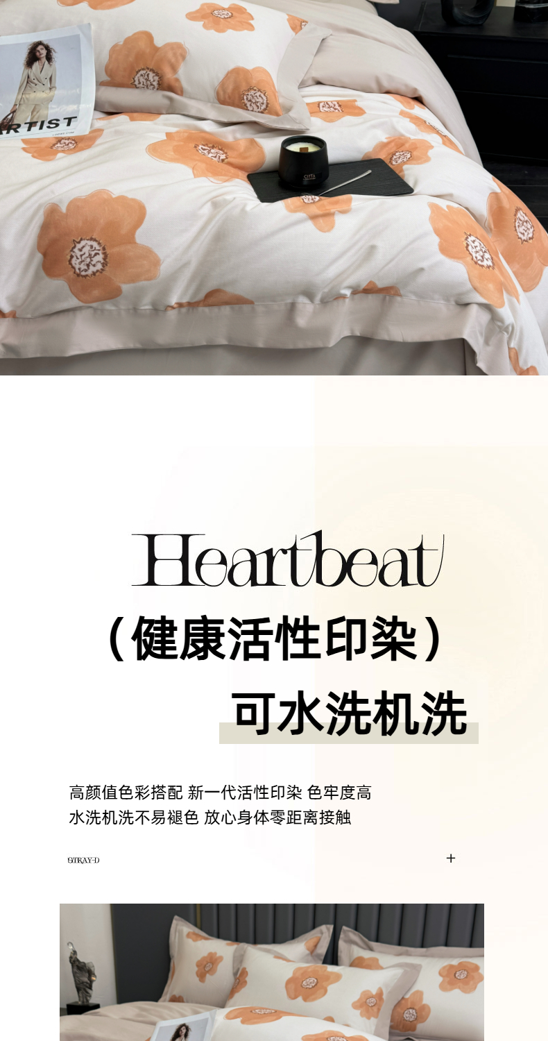 (总)乐蔻家纺 2025新款全棉拼边陶瓷生态磨毛四件套,春苑 米,格意,花蔓,花棠 米,梦园 绿,浅梦 米驼,倾语 灰,柔黛 豆沙,素暖 米,叶迹 绿,余生浅茉 米,悦野 米