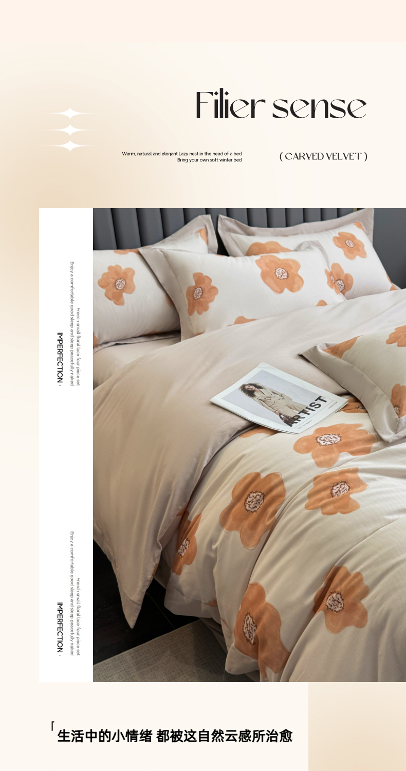 (总)2023款烂花+印花+小绣花牛奶绒四件套高克重保暖套件,埃菲尔-柯南灰,埃菲尔-落日橘,埃菲尔-奶咖