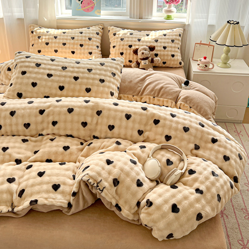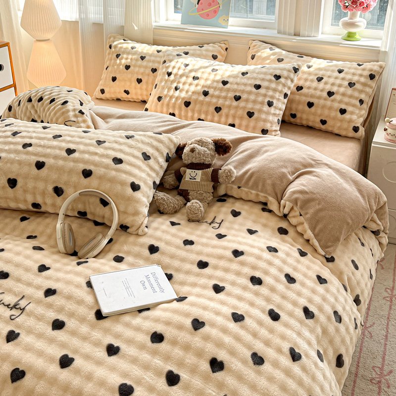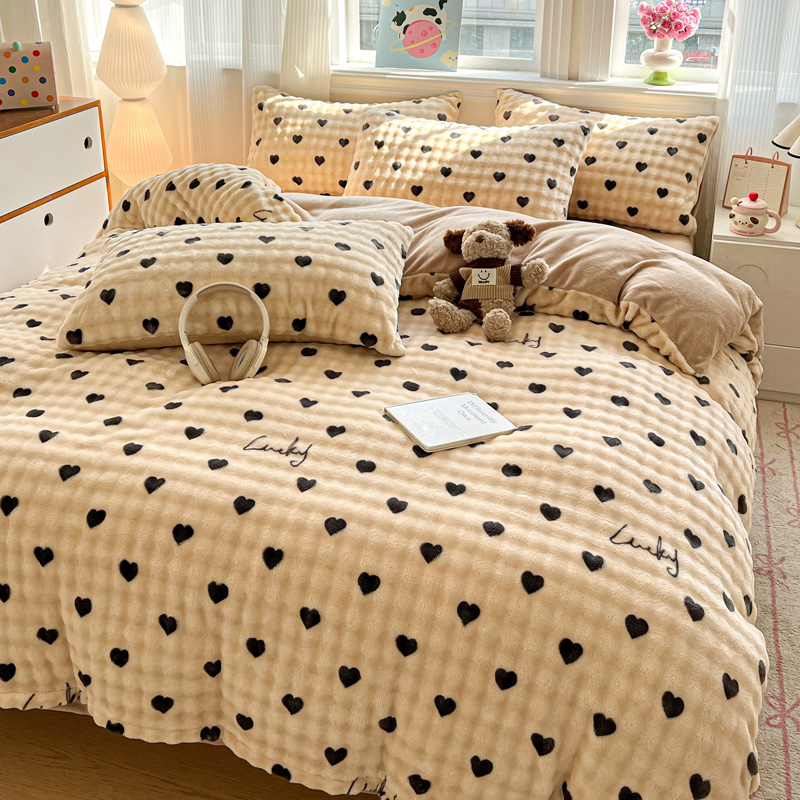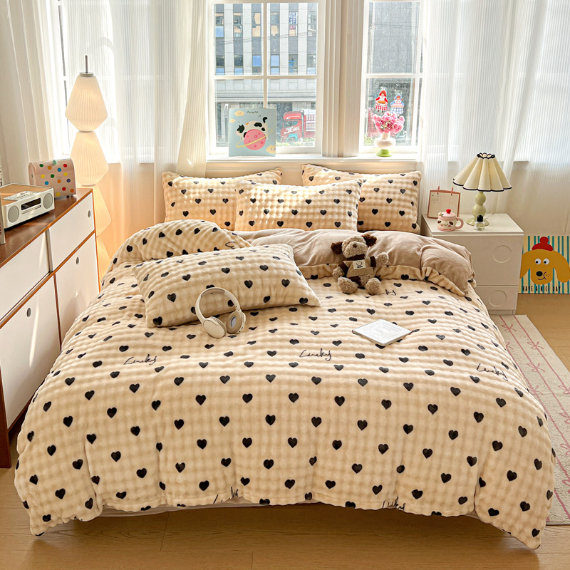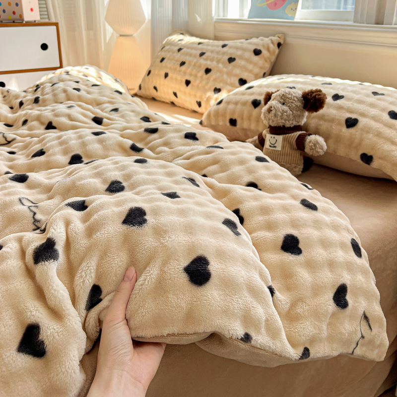 (总)一比一家纺 2025新款亲肤舒适双面牛奶绒床盖款四件套,妖姬,爱心灰,胭脂,爱心紫,豹纹KT咖,复古小花,黑珍珠,可可奶咖,蔷薇粉,紫波点,丝绒蛋糕,樱桃格趣,枝枝兔,朵缦,樱桃派,黑糖珍珠,赫本,豆蔻年华