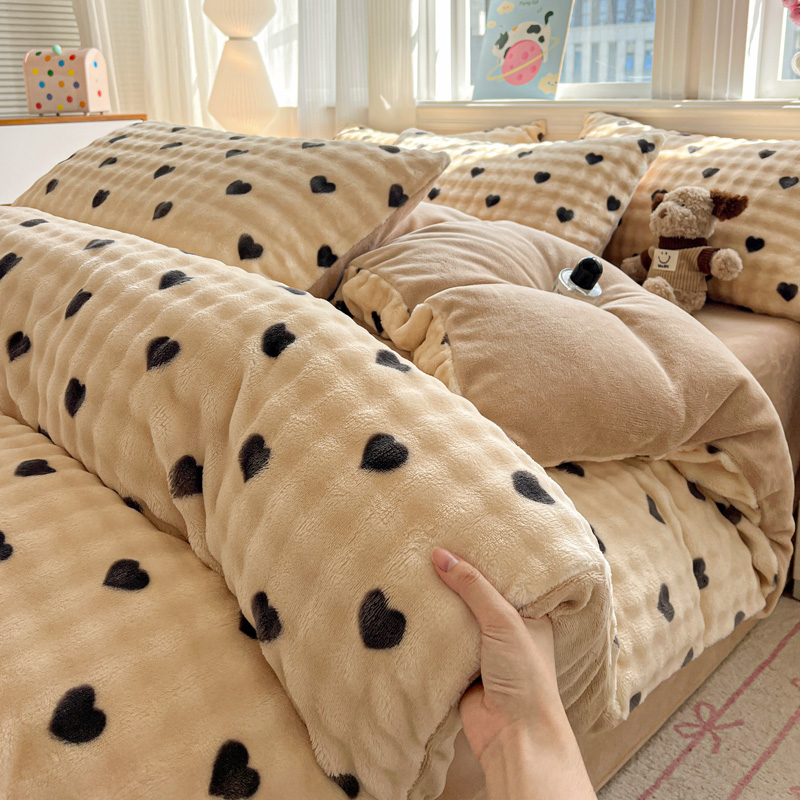 商品名称:一比一 2025新款亲肤舒适保暖泡泡绒牛奶绒四件套 焦糖奶咖