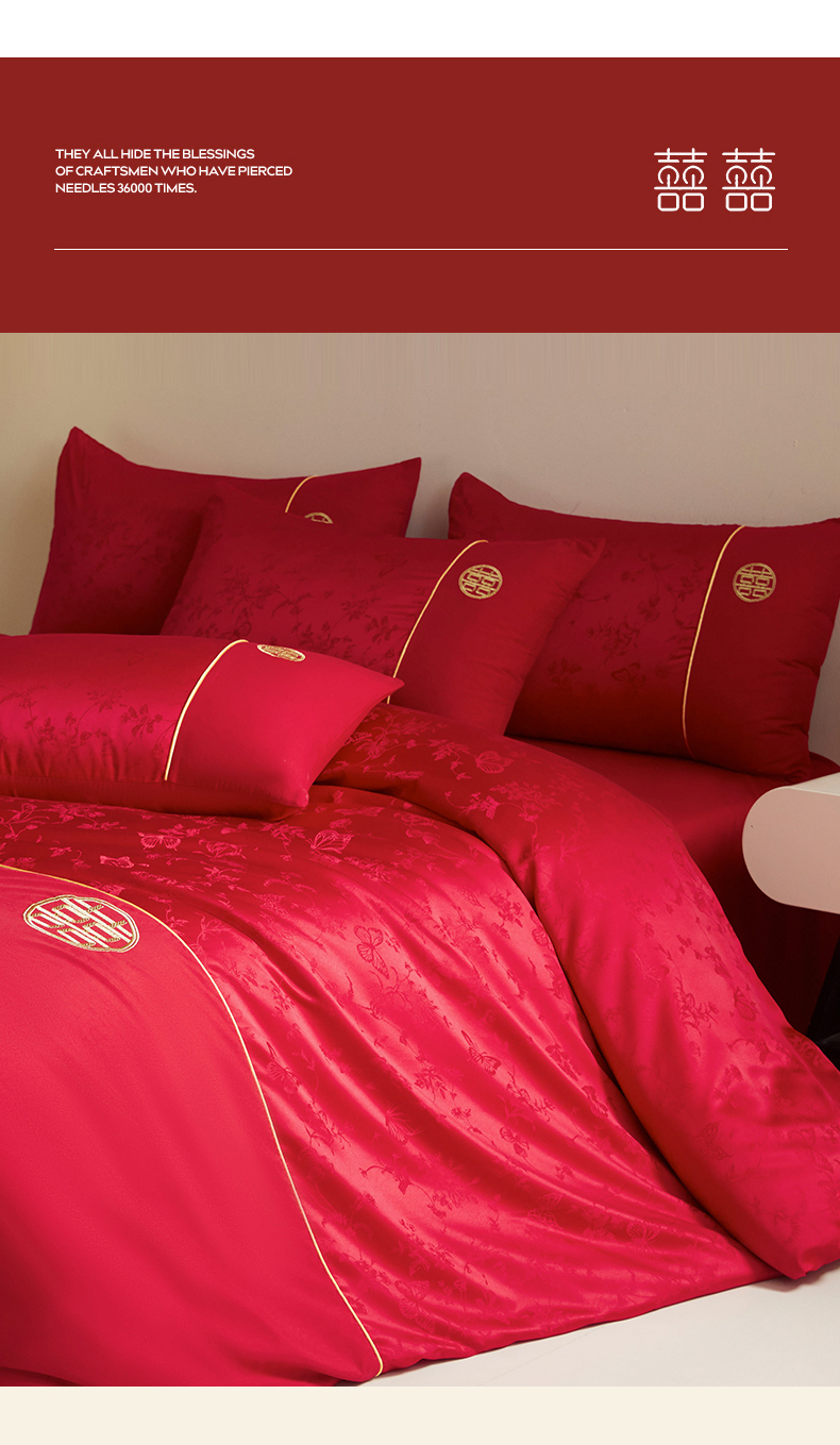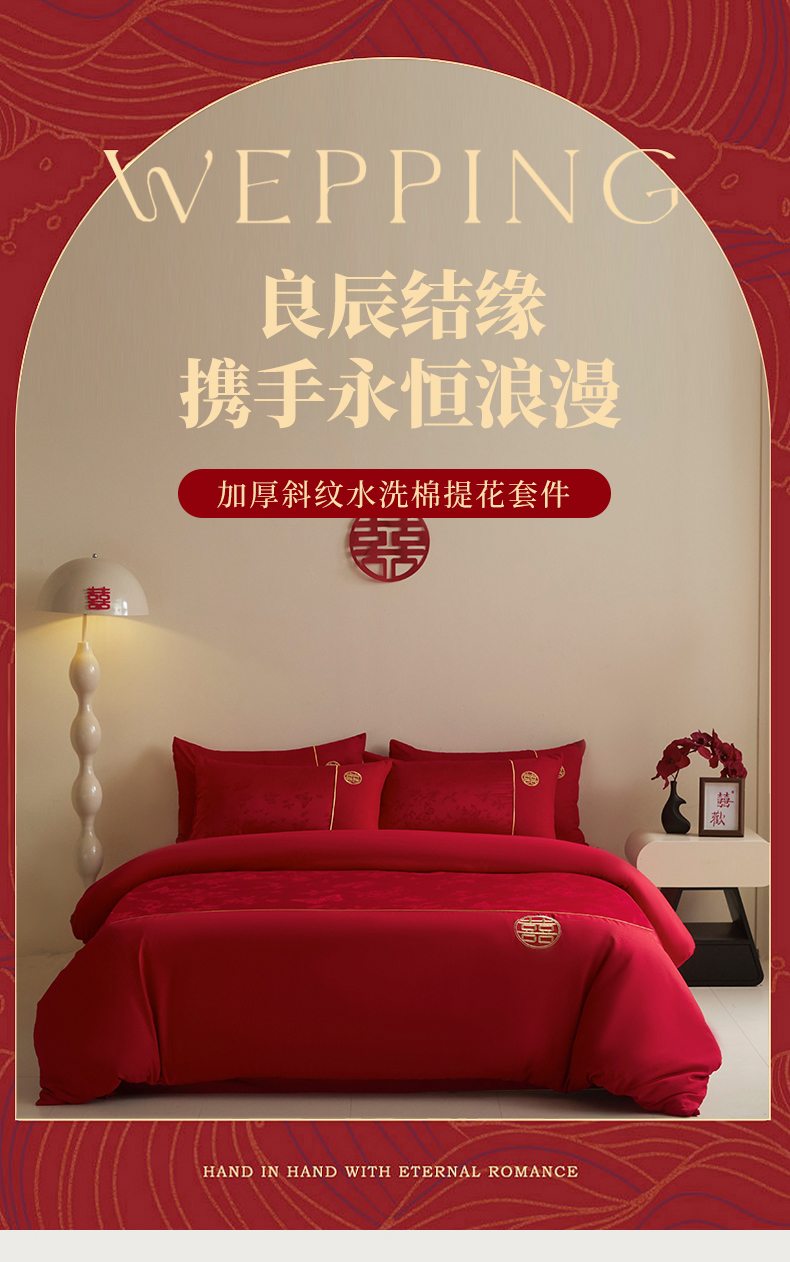 (总)千希家纺 2025新款婚庆系列高克重工艺款提花布刺绣四件套,浪漫婚礼,新婚大喜