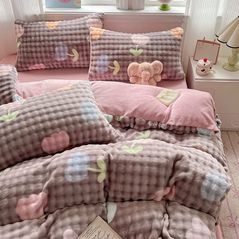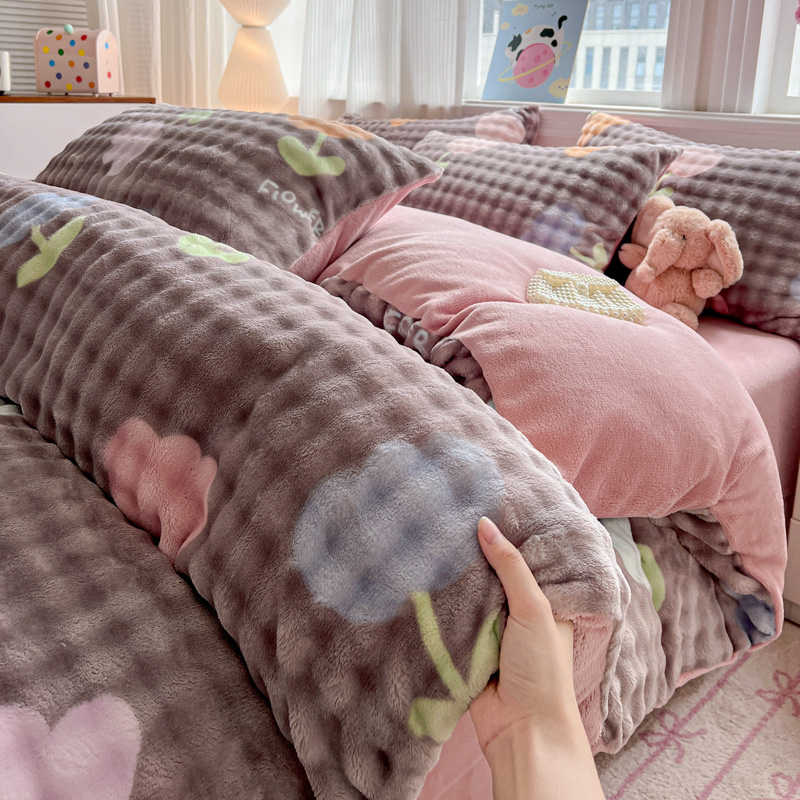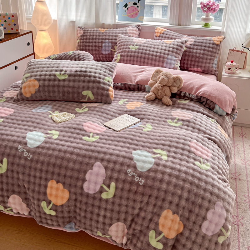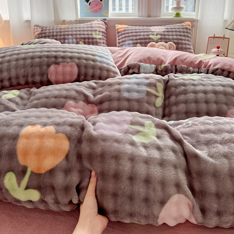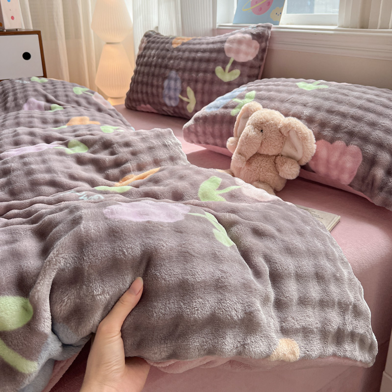 一比一 2025新款亲肤舒适保暖泡泡绒牛奶绒四件套 郁金香