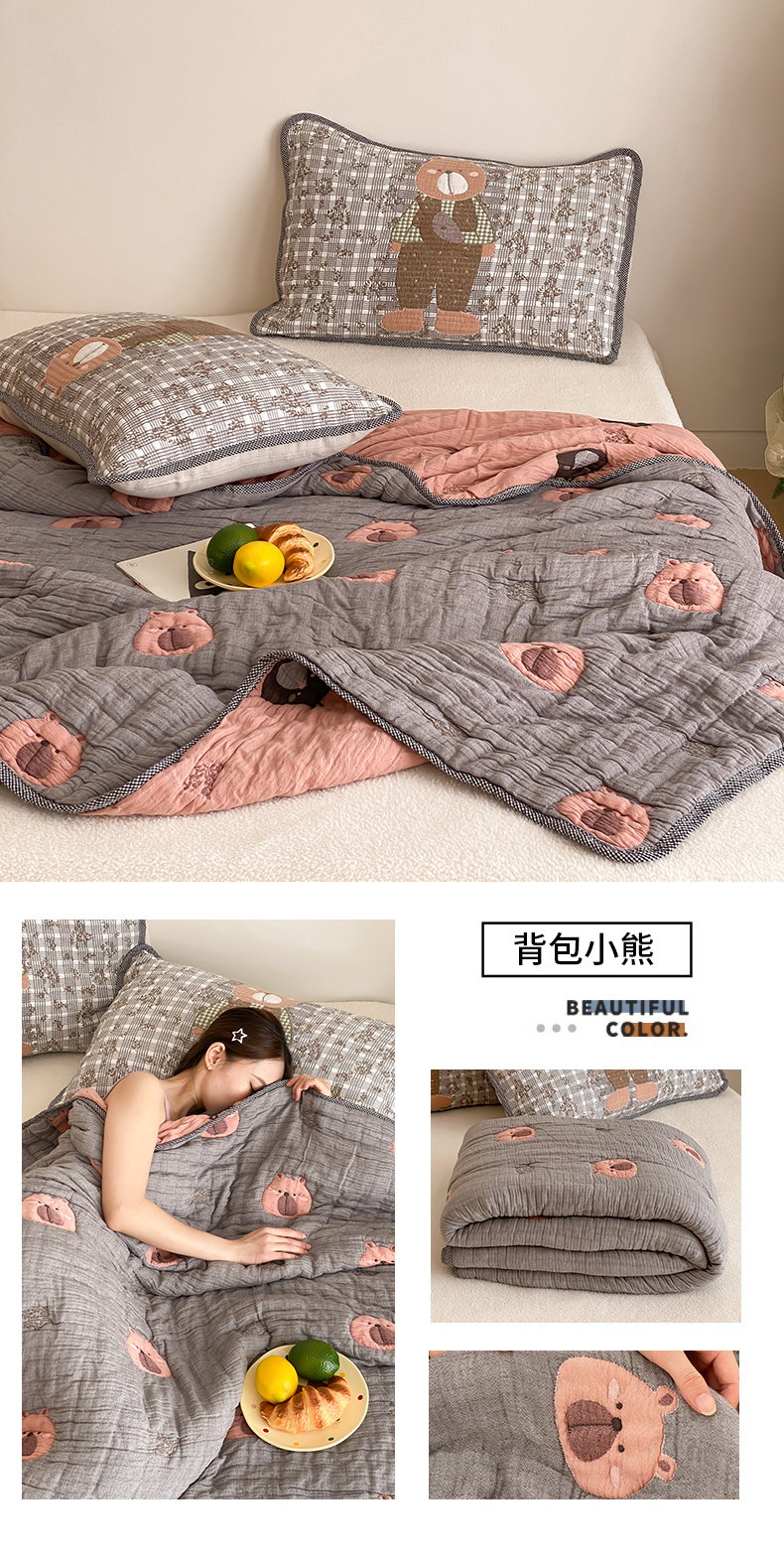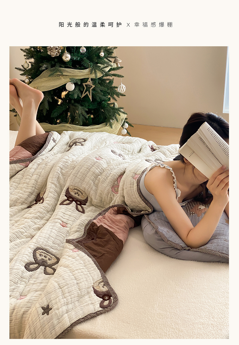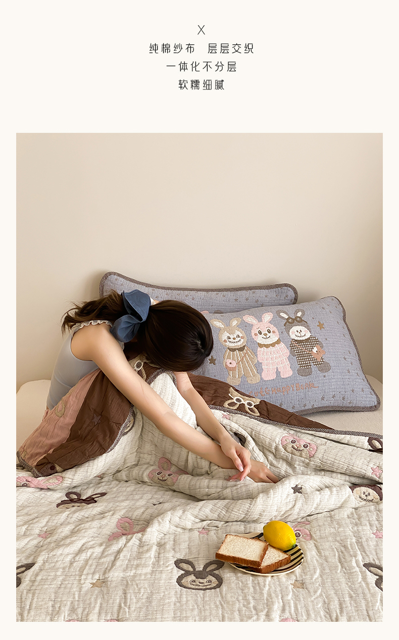 商品名称:麻依 2025新款十层纱布软萌泡芙被被子春秋被子被芯 甜品熊