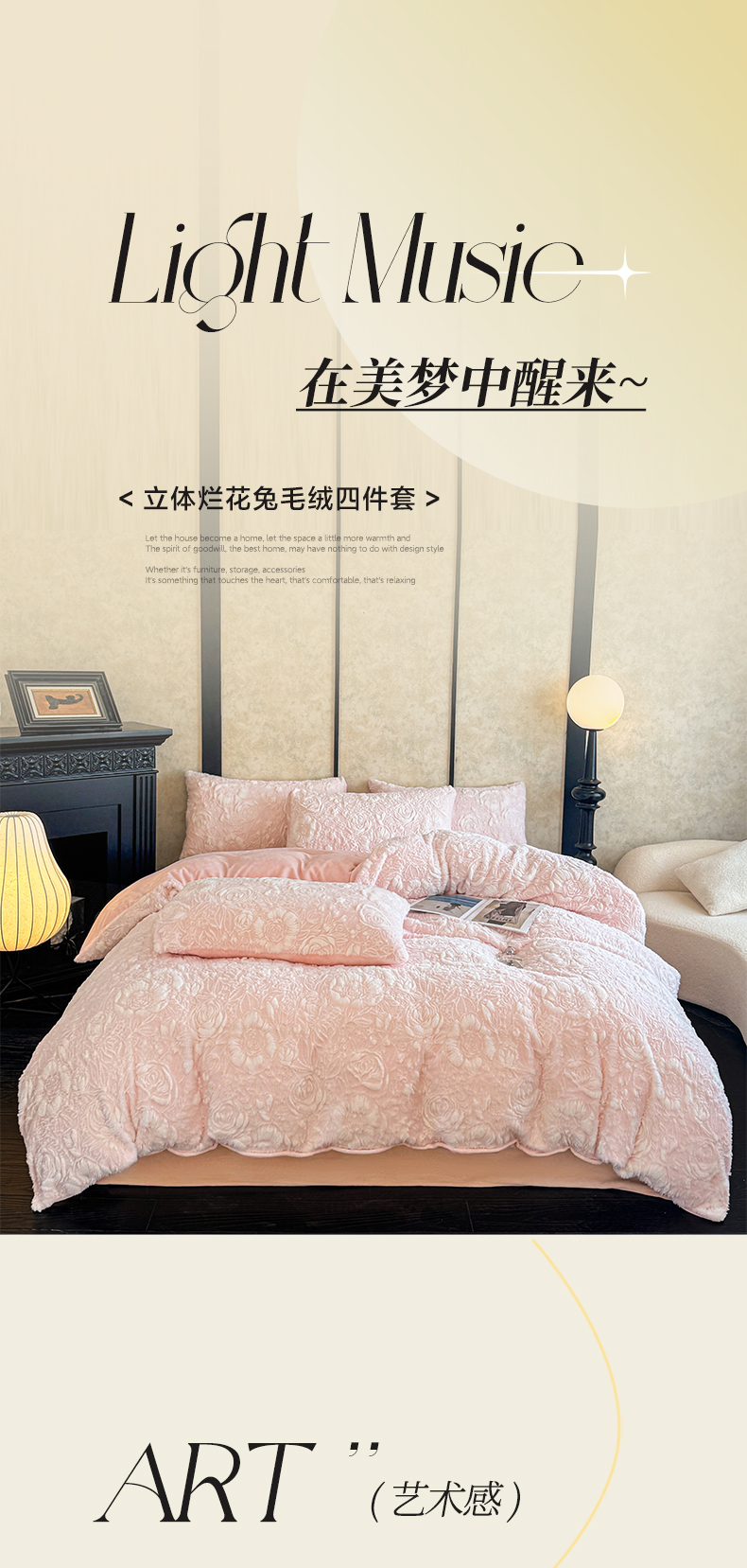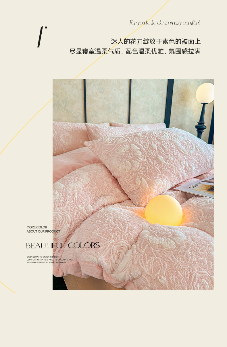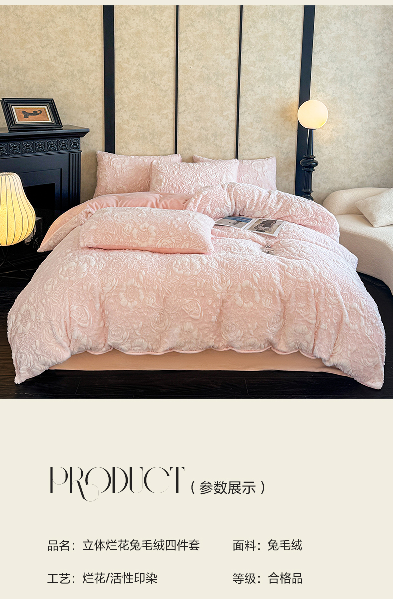 商品名称:畅畅家纺 2025新款冬季立体烂花兔毛绒床单床笠四件套-佳人有约系列 佳人有约-樱花粉