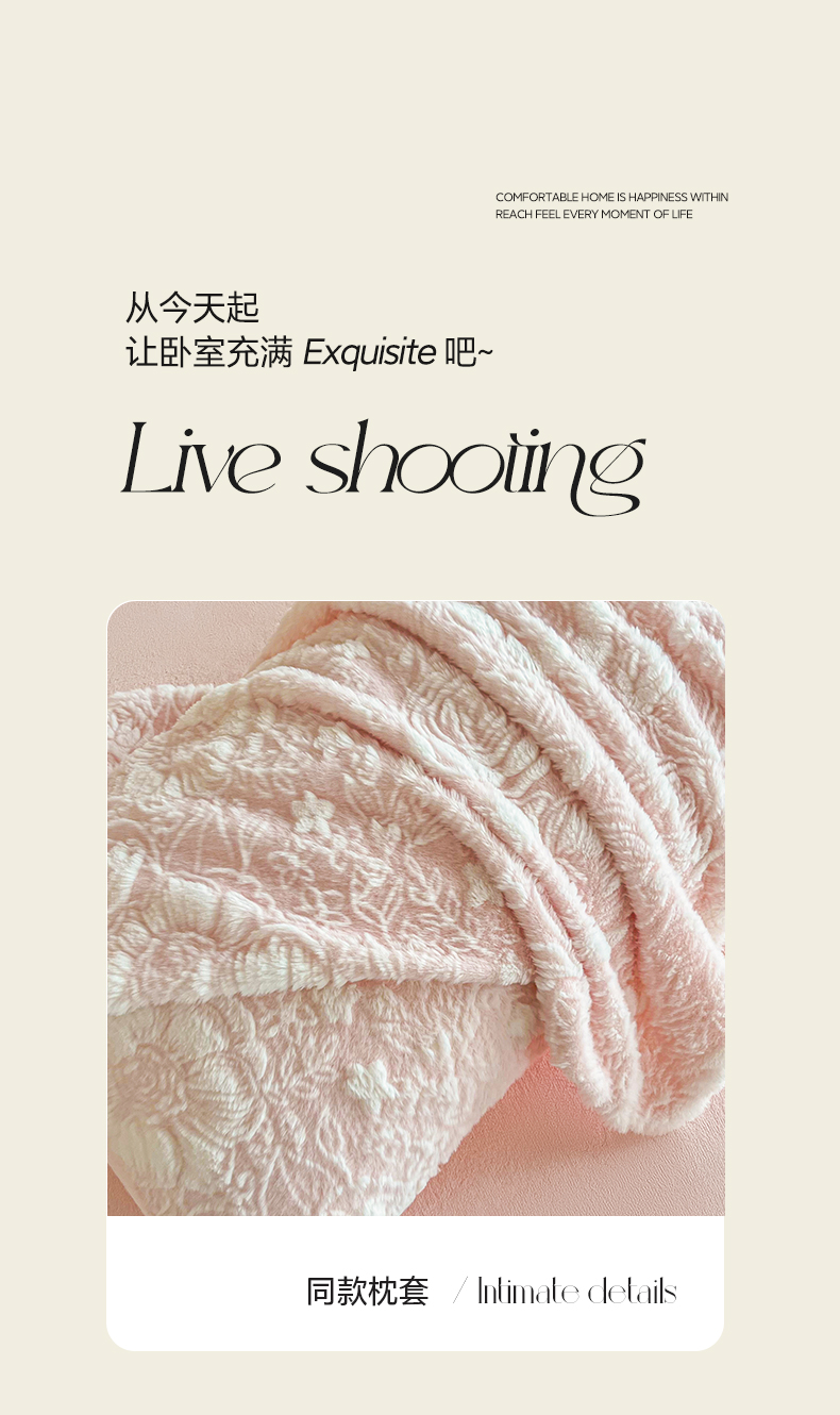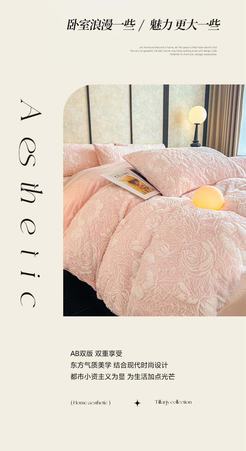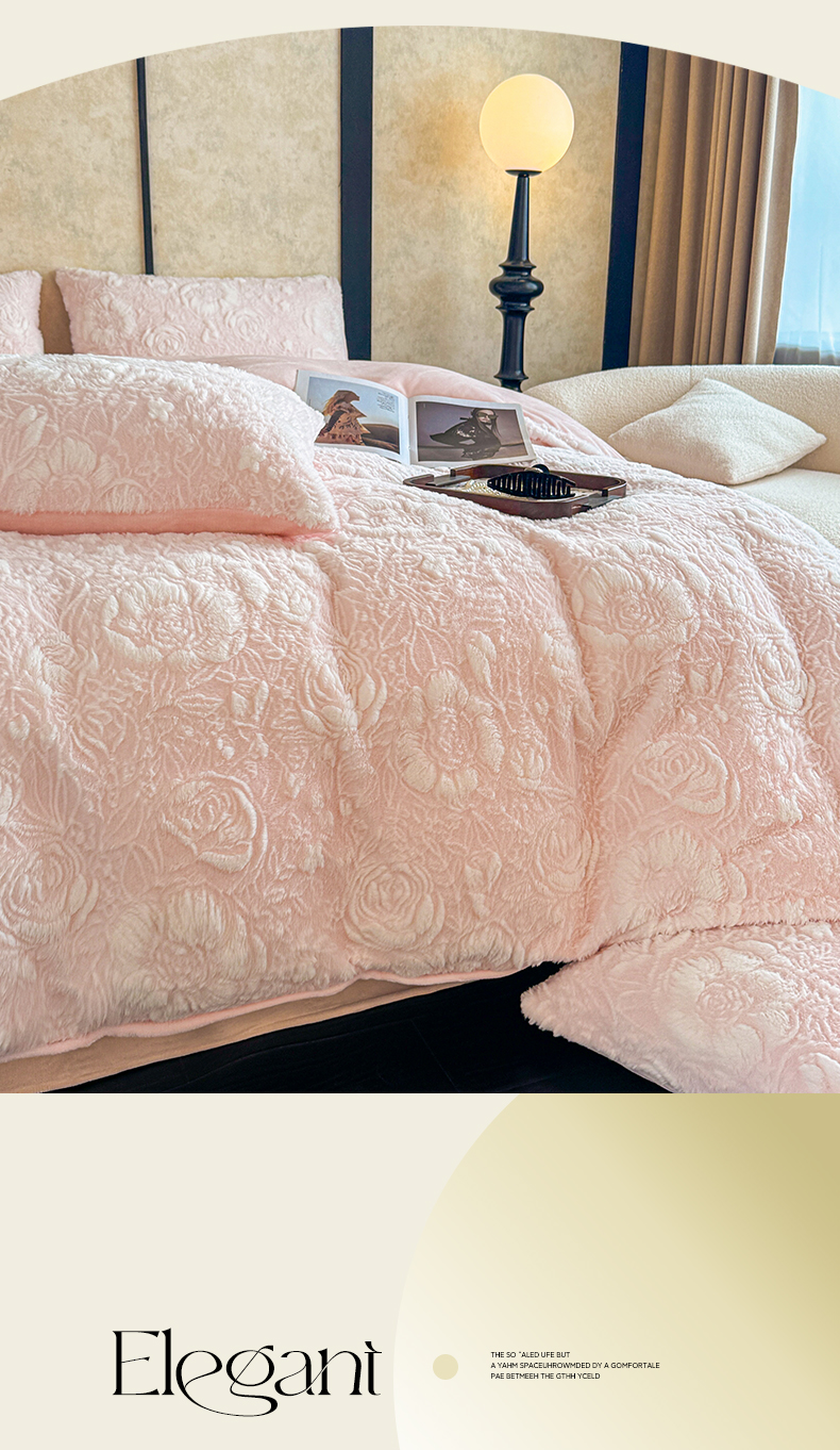 畅畅家纺 2025新款冬季立体烂花兔毛绒床单床笠四件套-佳人有约系列 佳人有约-樱花粉