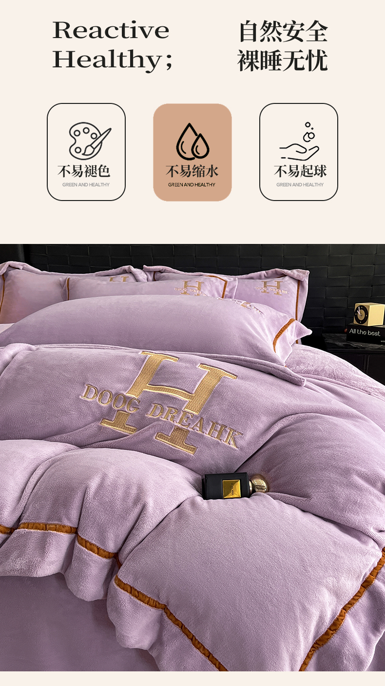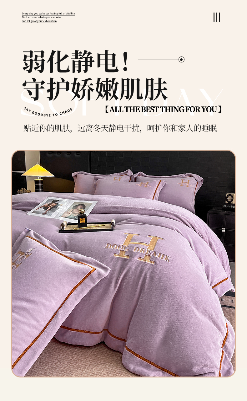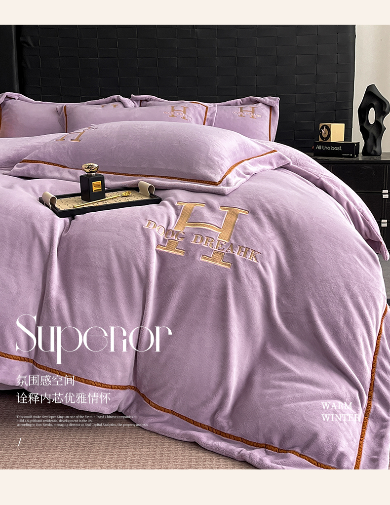 当前位置: 91家纺网 > 商品网购 > 床品套件 > 四件套 > 牛奶绒四件套 > 露梦家纺 2025新款A类牛奶绒工艺款刺绣四件套-艾伦系列(提供买家秀) 艾伦-木槿紫