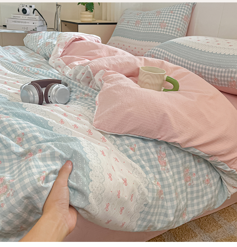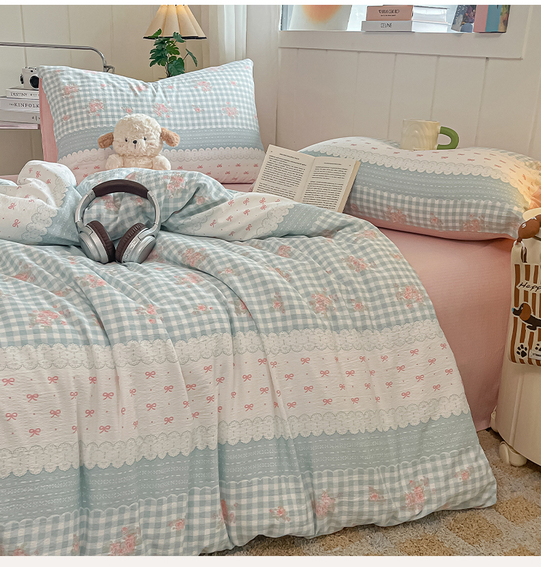 当前位置: 91家纺网 > 商品网购 > 床品套件 > 四件套 > 其它四件套 > 佳鸿家纺 2025新款卡通云感双层纱四件套碎花学生宿舍三件套床单款 蓝格田园风