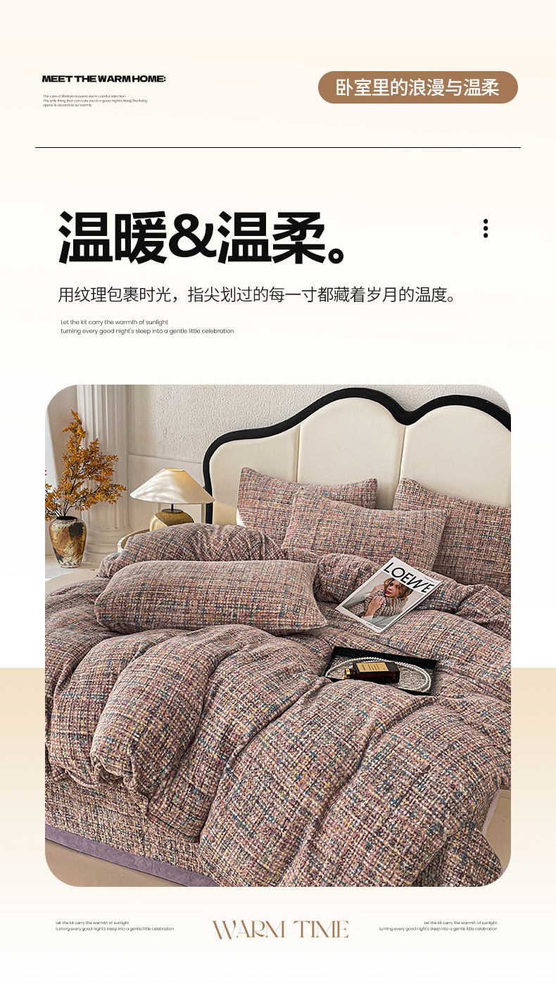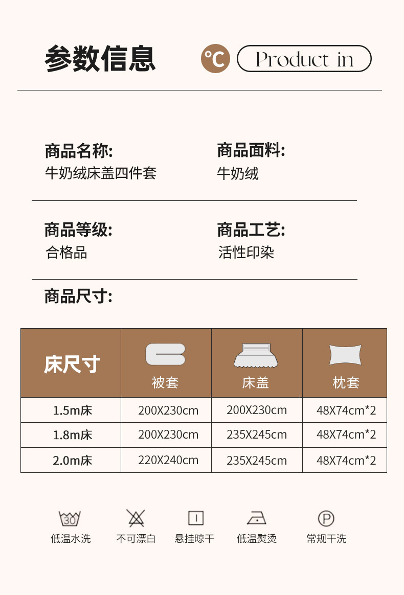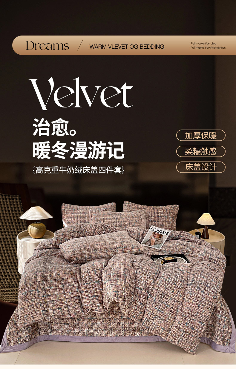 商品名称:大渔生活 2025新款牛奶绒印花床盖款四件套 小相思