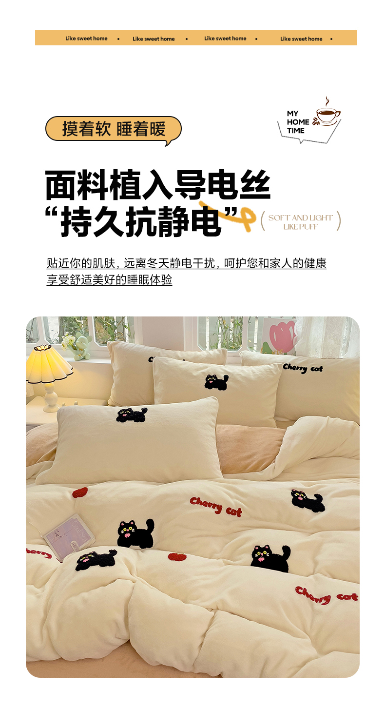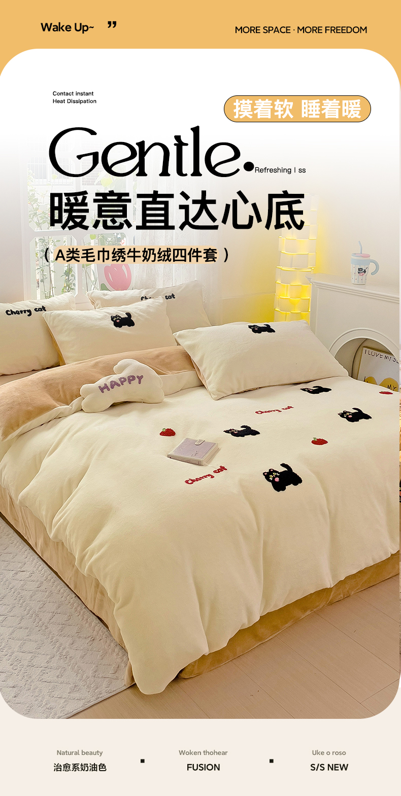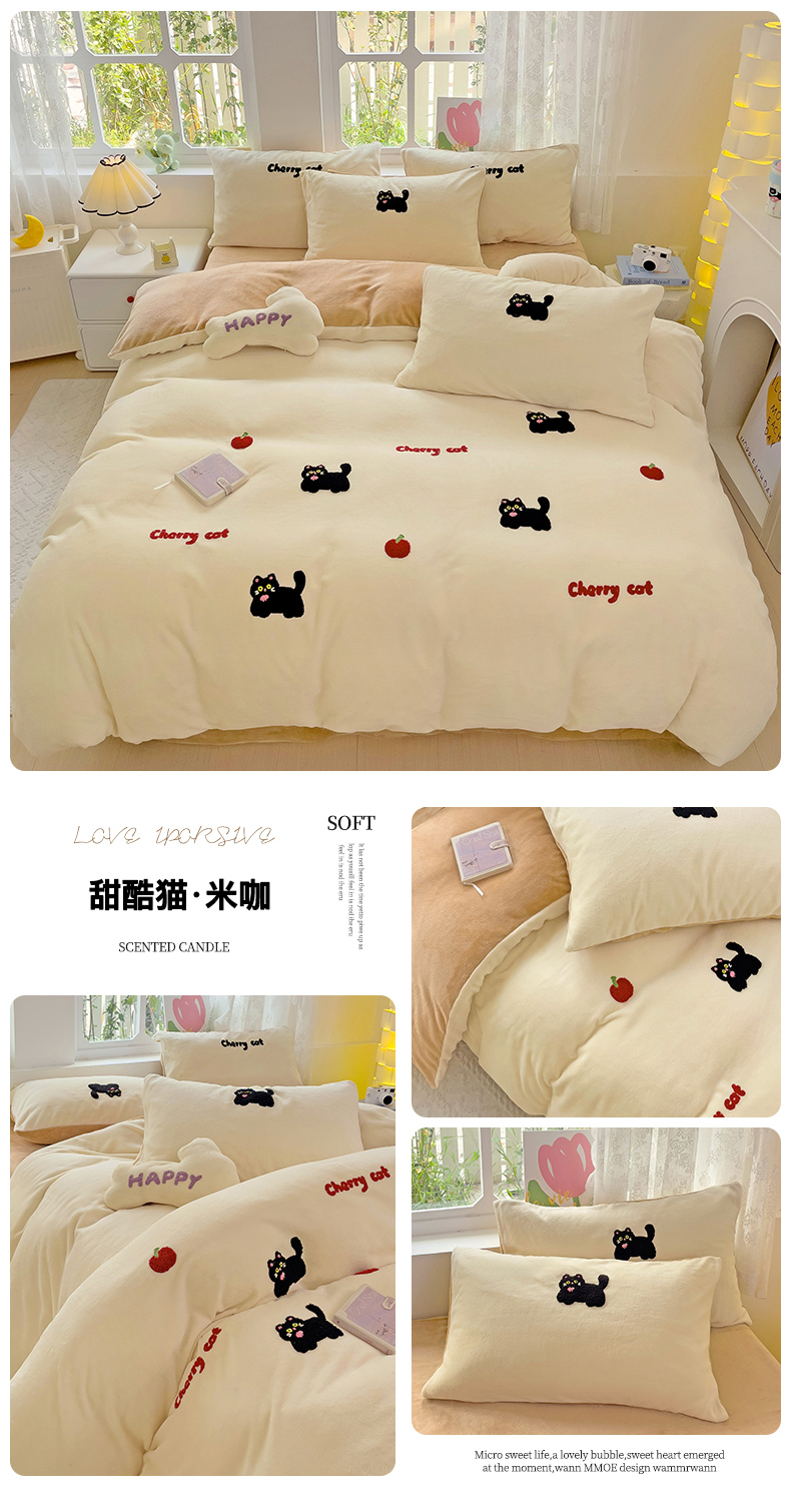 当前位置: 91家纺网 > 商品网购 > 床品套件 > 四件套 > 牛奶绒四件套 > 寐居家纺 2025新款纯色毛巾绣牛奶绒四件套 甜酷猫-米咖