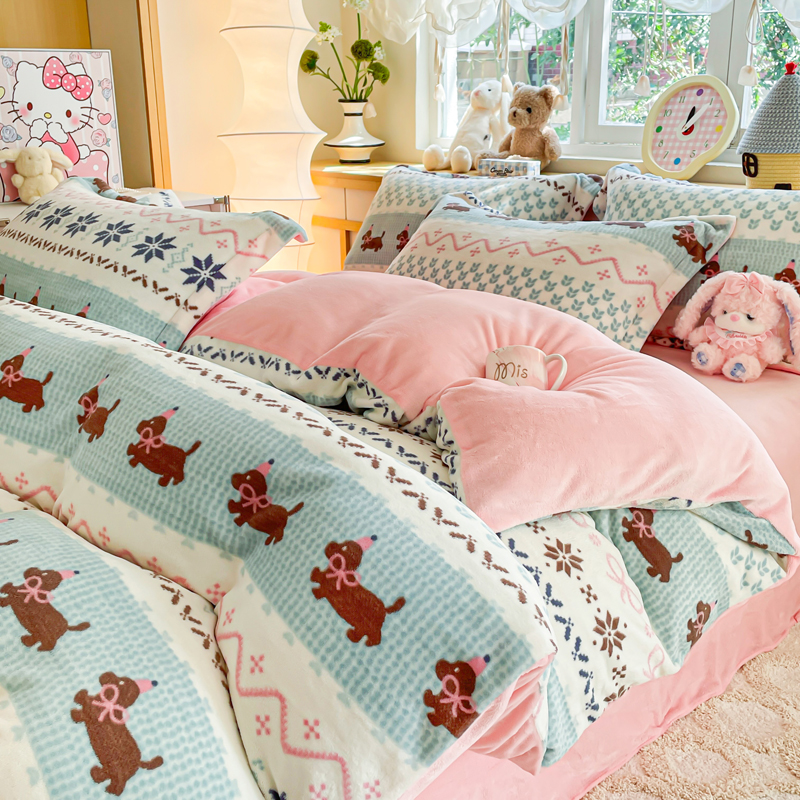 (总)弗苓家纺 2025新款加厚保暖双面牛奶绒四件套