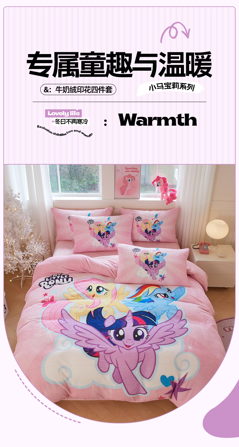 当前位置: 91家纺网 > 商品网购 > 床品套件 > 四件套 > 牛奶绒四件套 > 蘭菲家纺 2025新款小马宝莉牛奶绒四件套 飞翔-宝莉