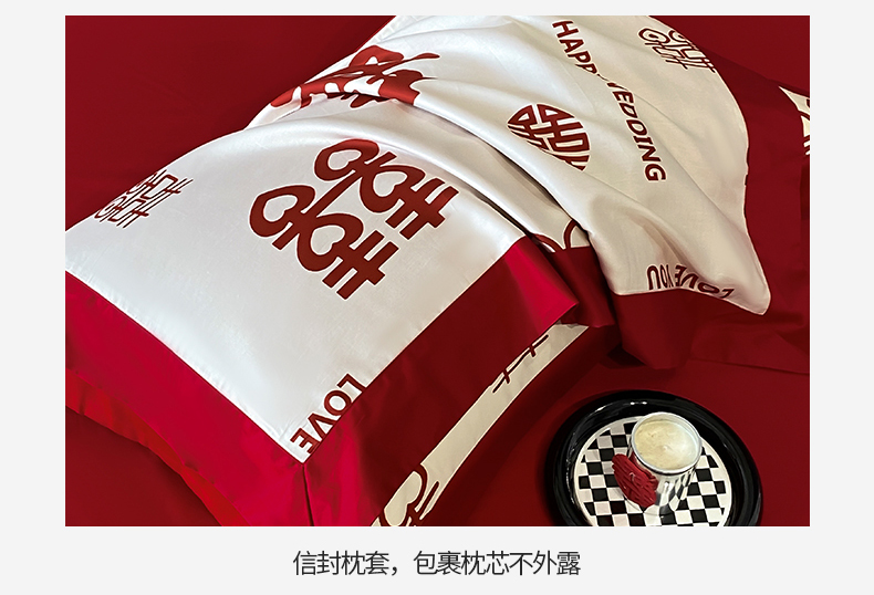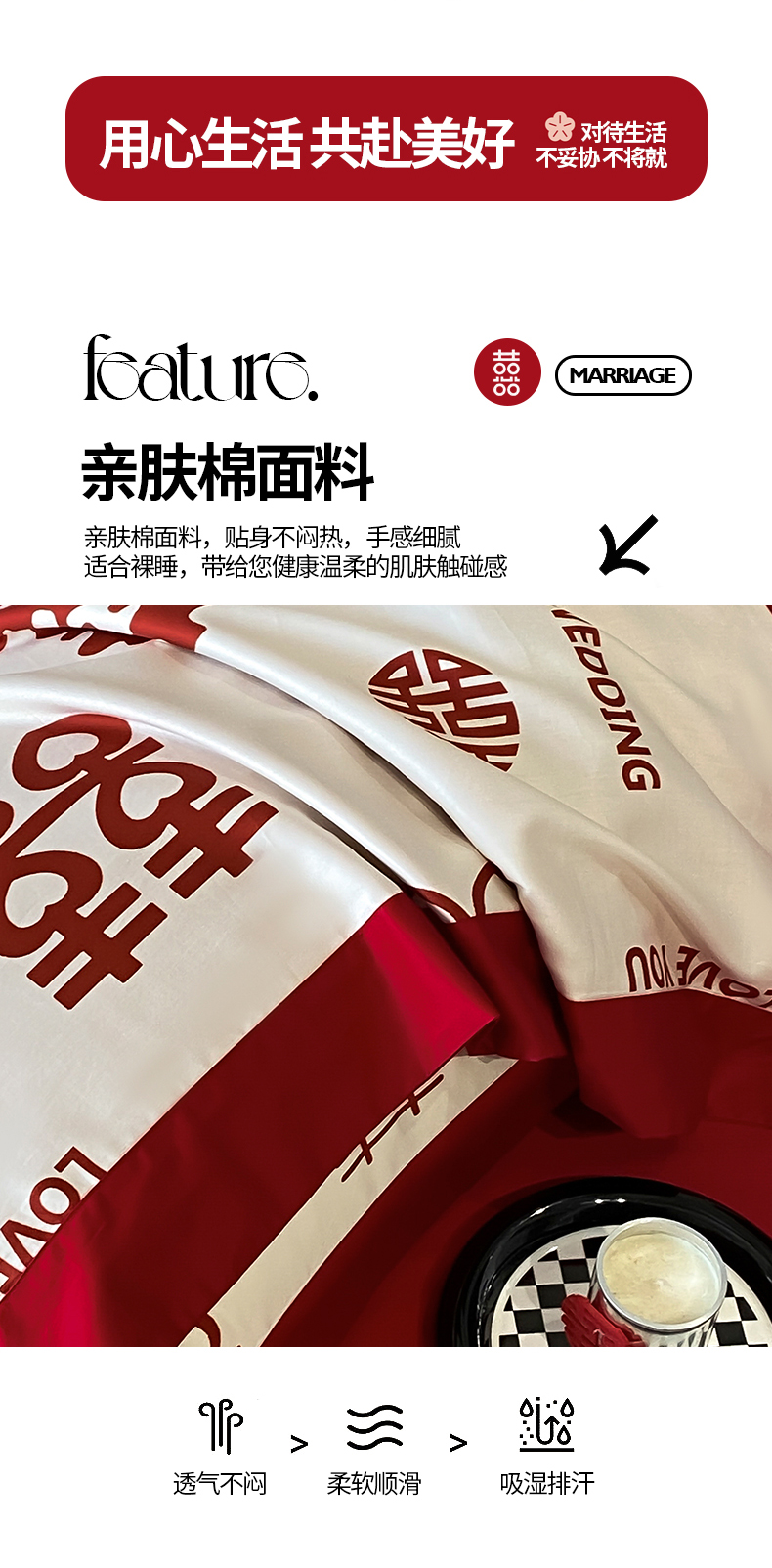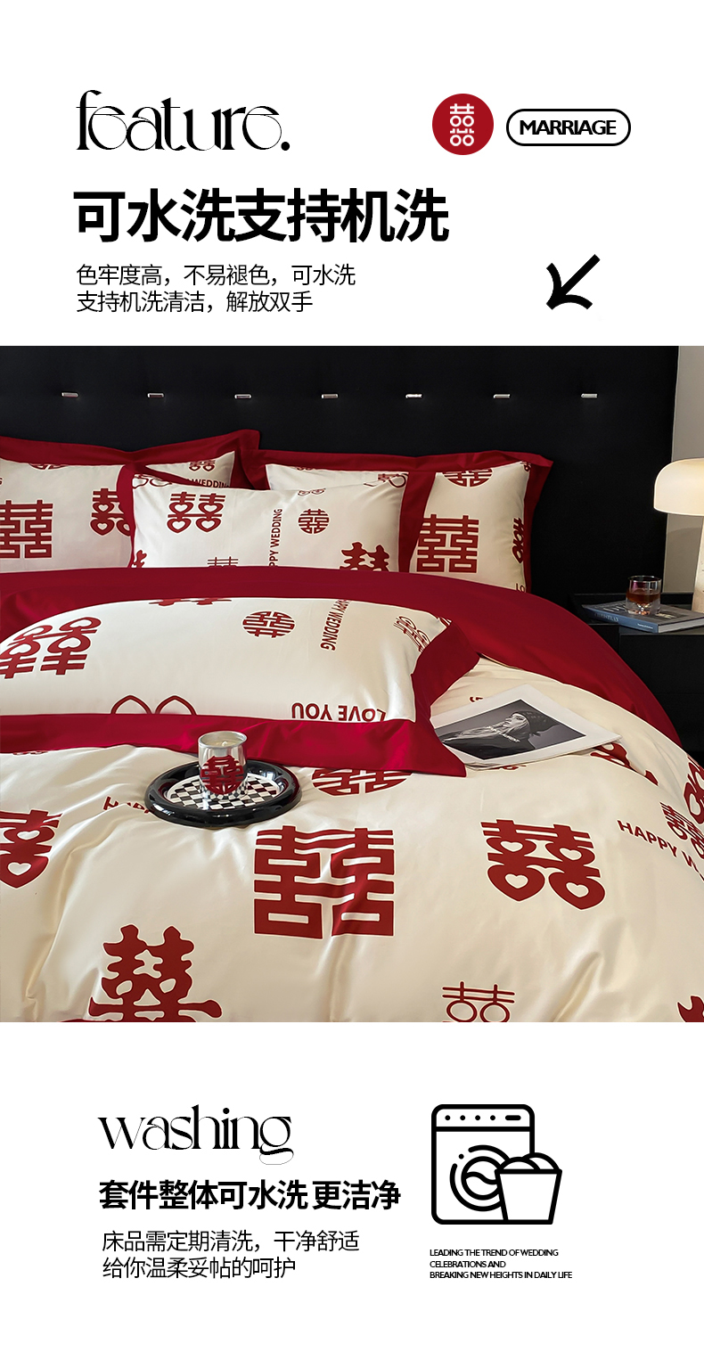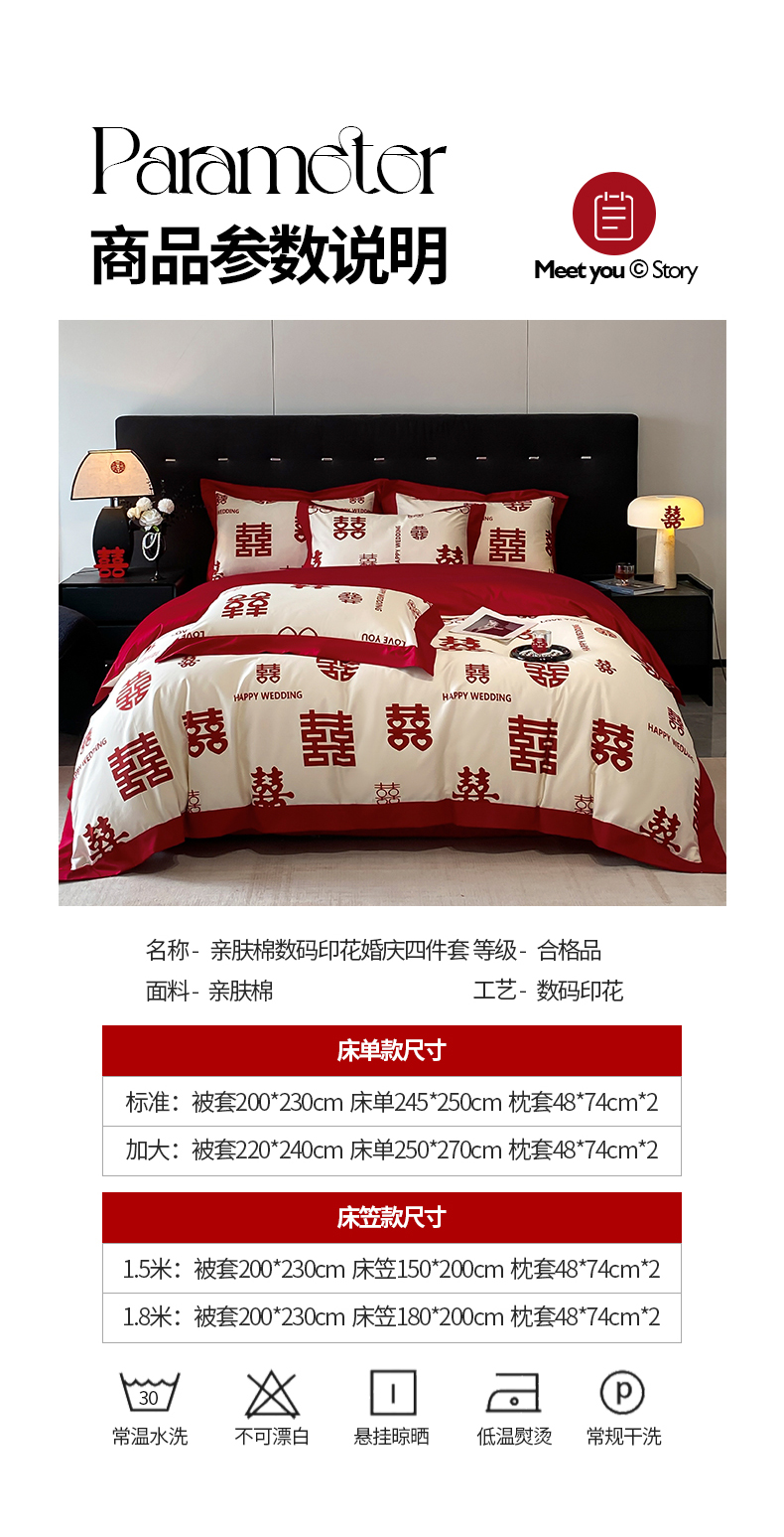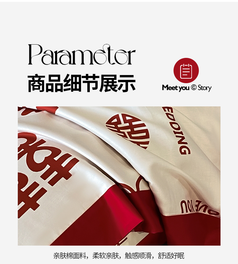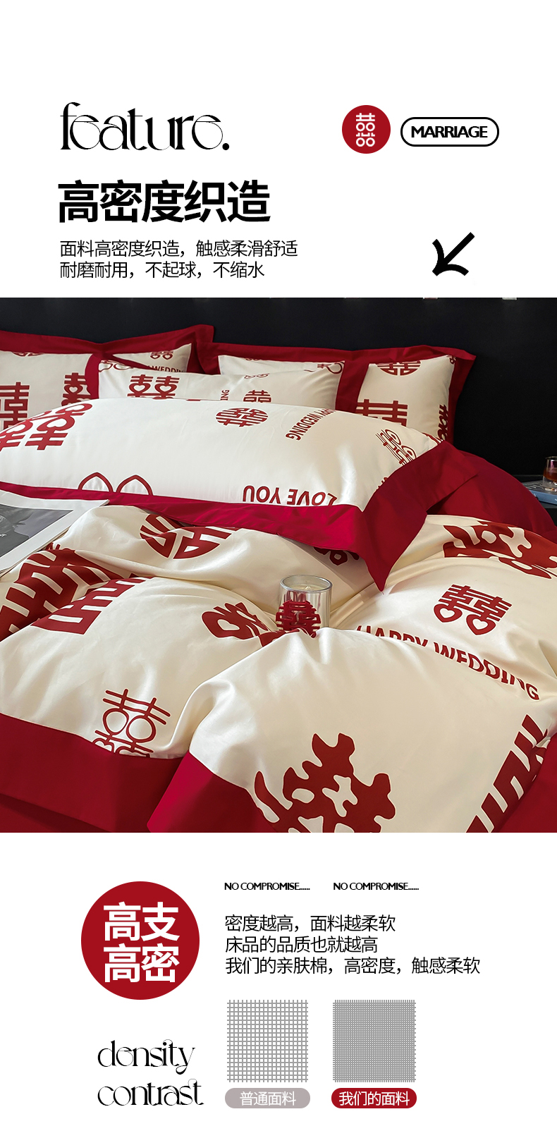 商品名称:置顶家纺 2025新款百福图亲肤婚庆四件套 千囍图