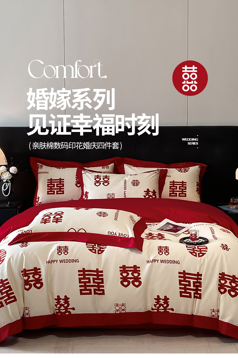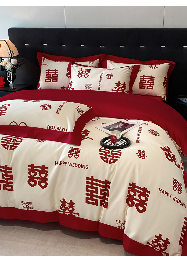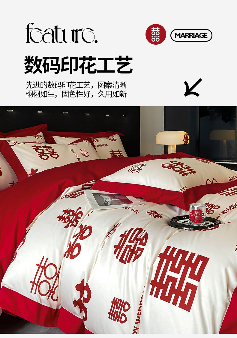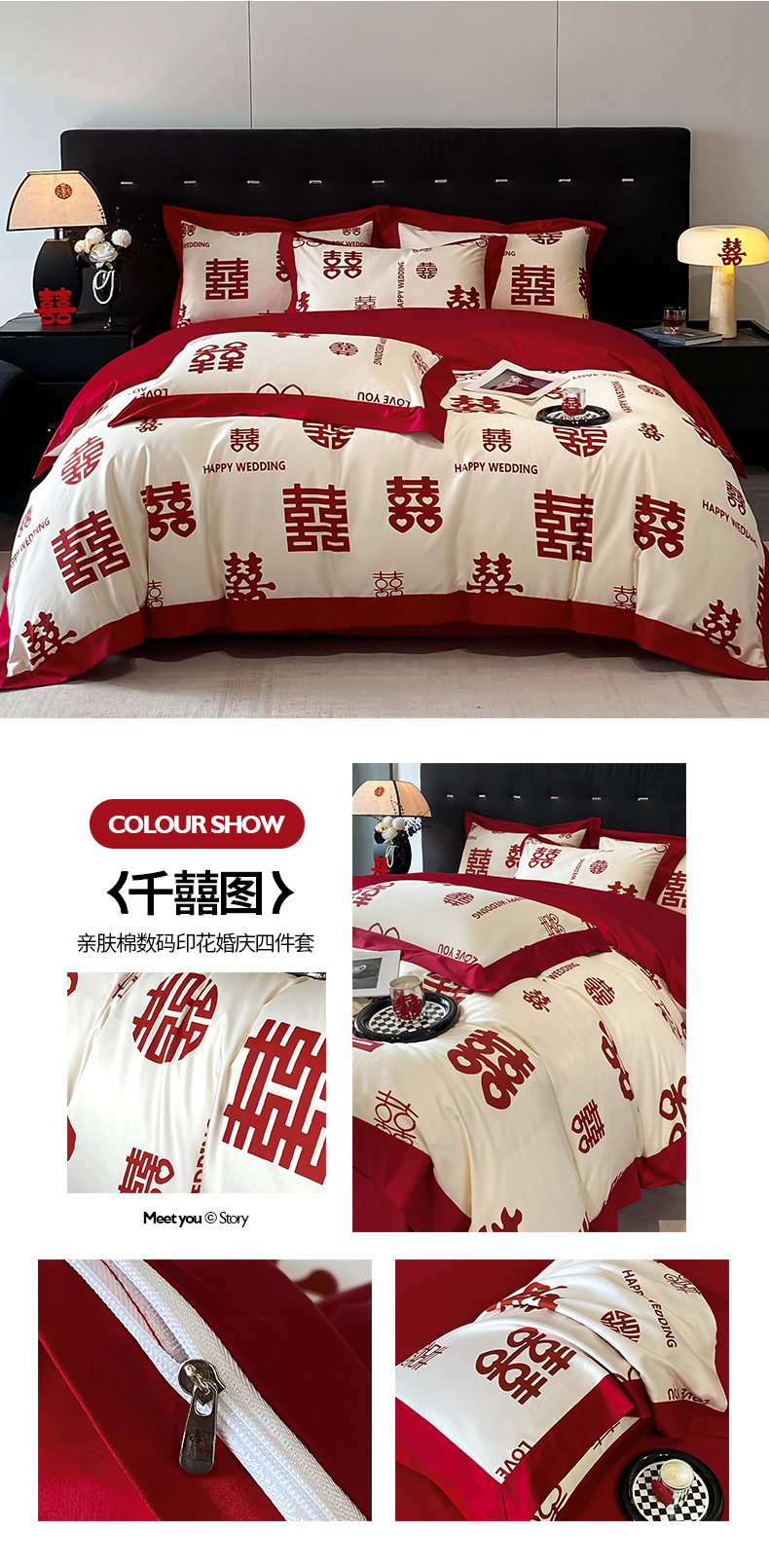 置顶家纺 2025新款百福图亲肤婚庆四件套 千囍图