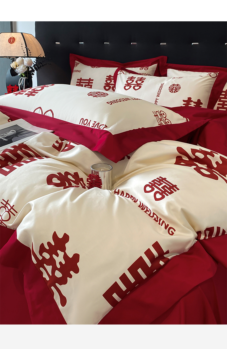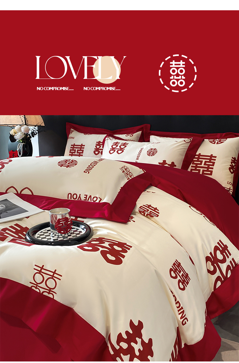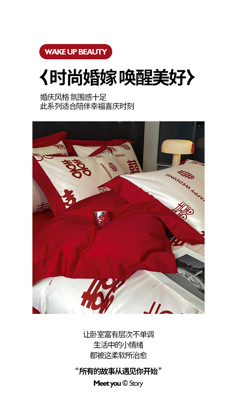 置顶家纺 2025新款百福图亲肤婚庆四件套 千囍图