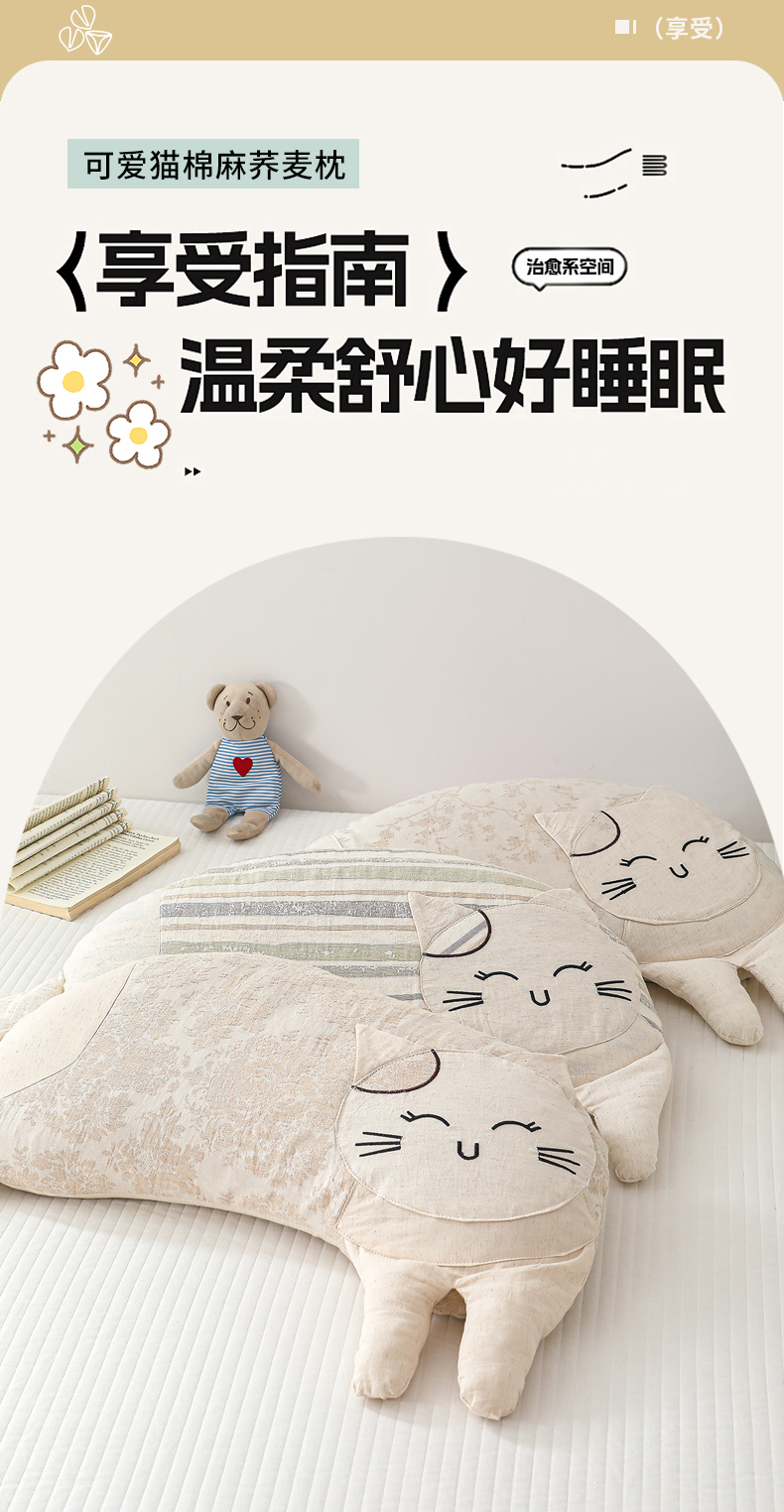 当前位置: 91家纺网 > 商品网购 > 枕头/枕芯/保健枕/颈椎枕 > 枕头枕芯 > 大熊枕芯 2025新款棉麻可爱猫卡通荞麦枕儿童学生成人枕头 棉麻猫-米色