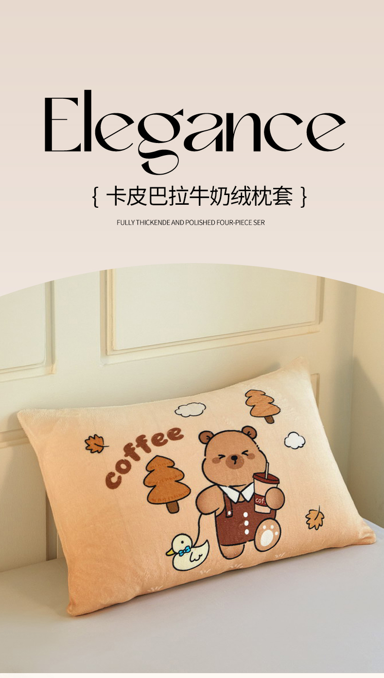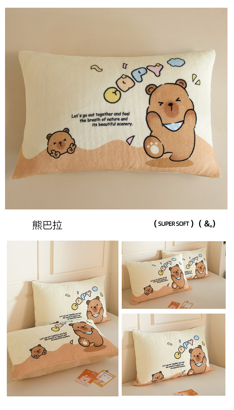 商品名称:蘭菲家纺 2025新款卡皮巴拉牛奶绒单枕套 枕套单件 拉小鸭