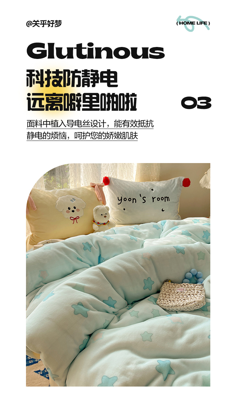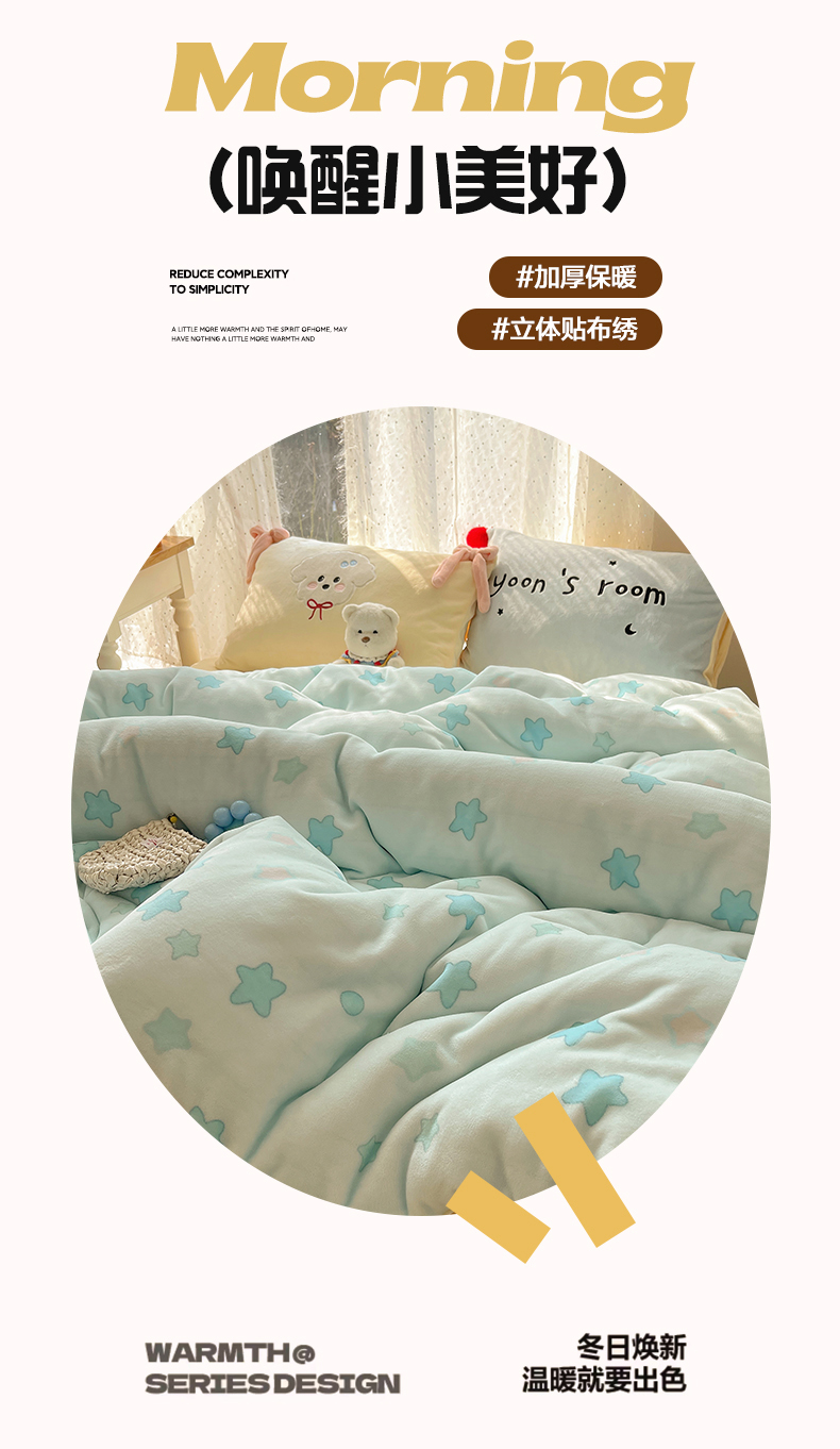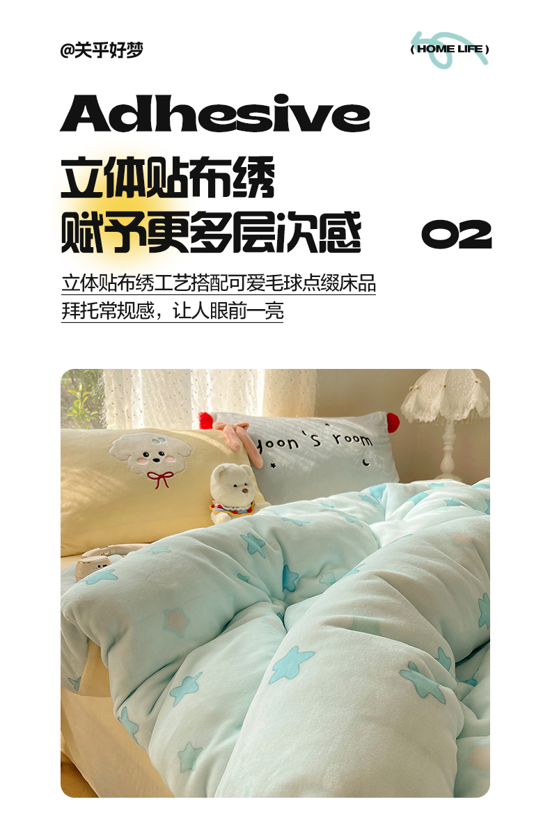 当前位置: 91家纺网 > 商品网购 > 床品套件 > 四件套 > 牛奶绒四件套 > 轻奢坊 2025新款亲肤舒适牛奶绒毛球蝴蝶结款贴布绣四件套 绒星星小狗