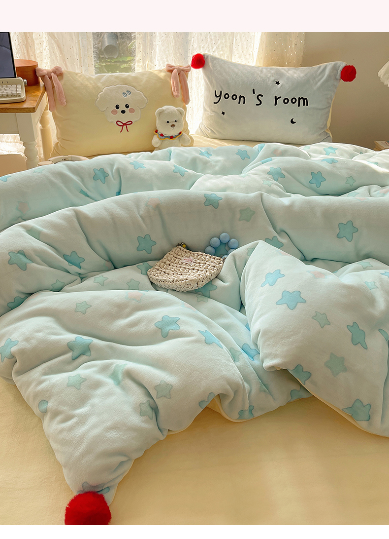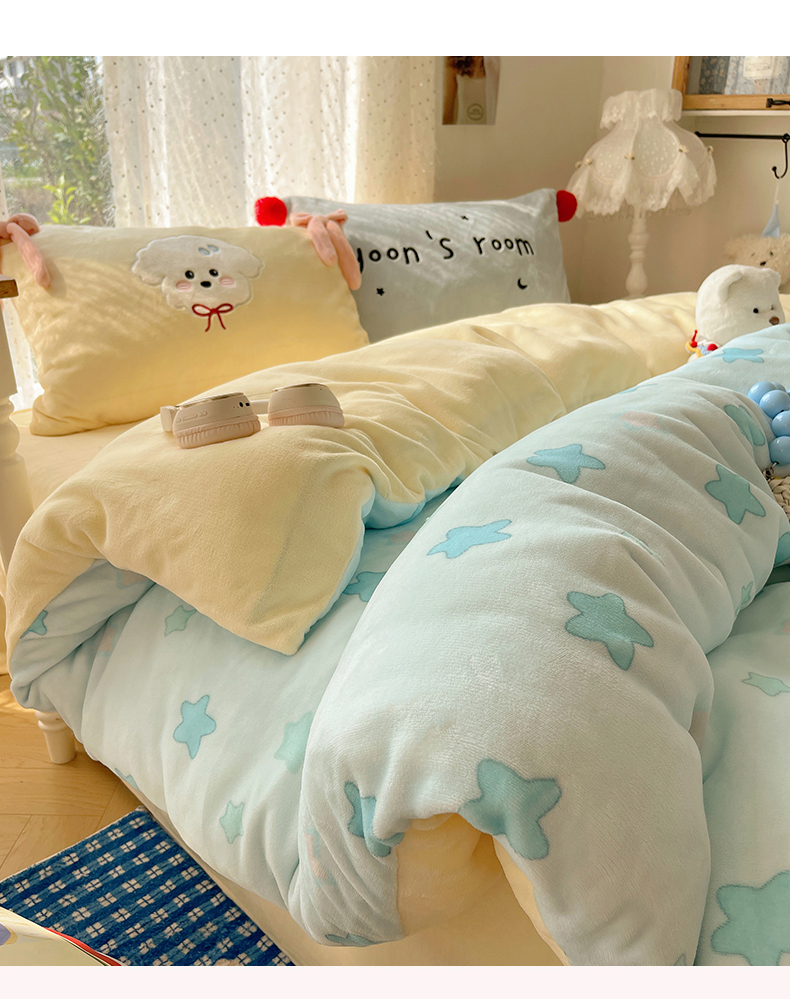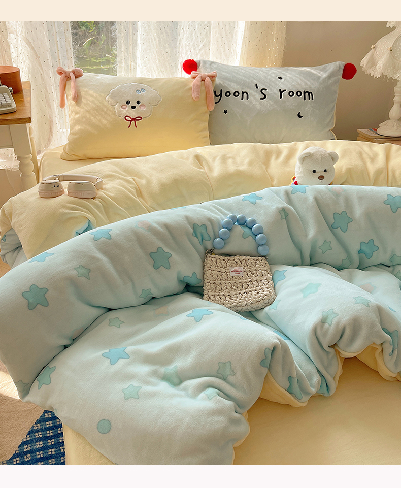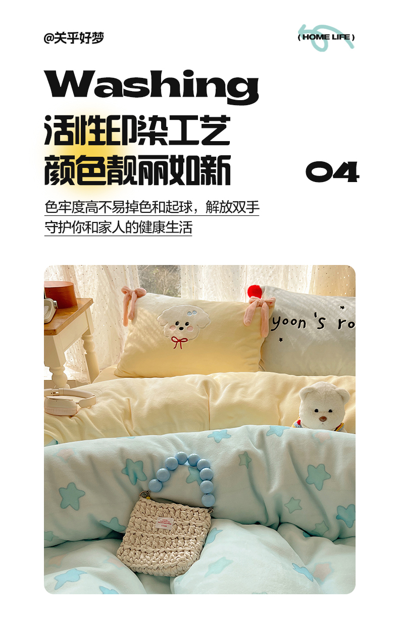 当前位置: 91家纺网 > 商品网购 > 床品套件 > 四件套 > 牛奶绒四件套 > 轻奢坊 2025新款亲肤舒适牛奶绒毛球蝴蝶结款贴布绣四件套 绒星星小狗
