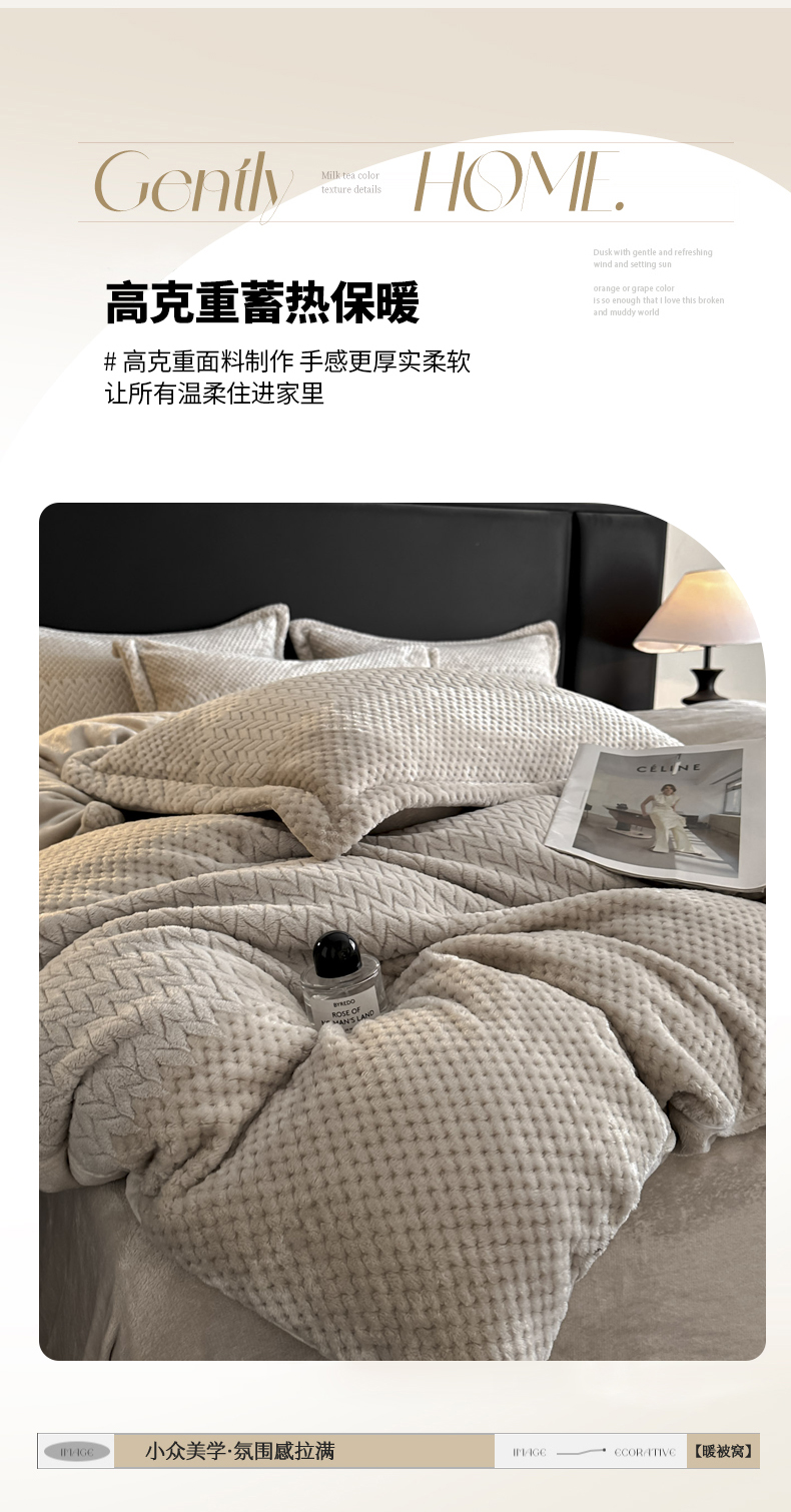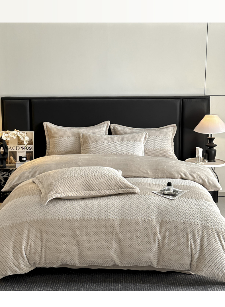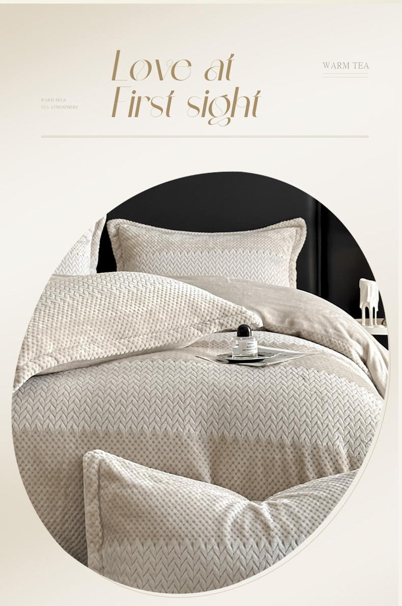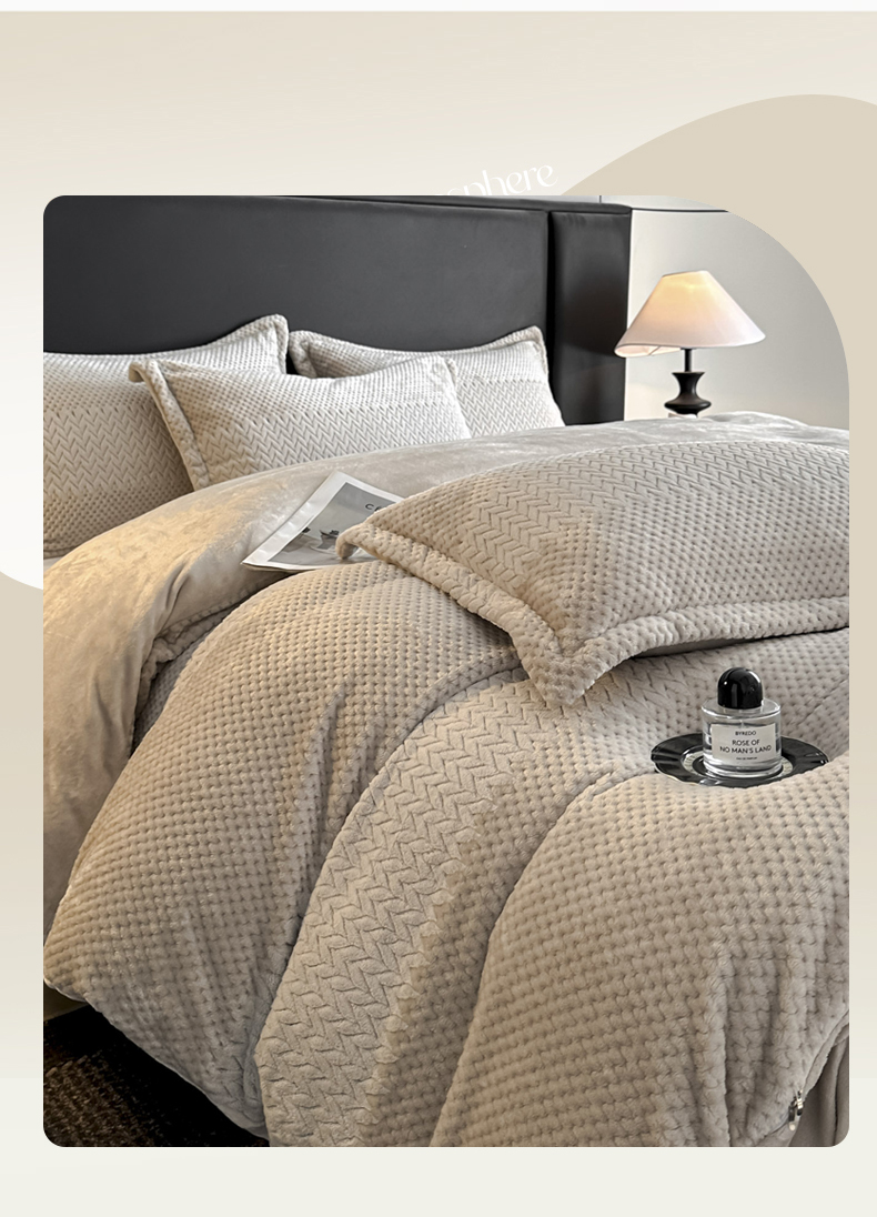 当前位置: 91家纺网 > 商品网购 > 床品套件 > 四件套 > 牛奶绒四件套 > 爱彼家纺 2025冬季新款色织拼色编织提花轻奢牛奶绒四件套-织锦系列 织锦-咖韵