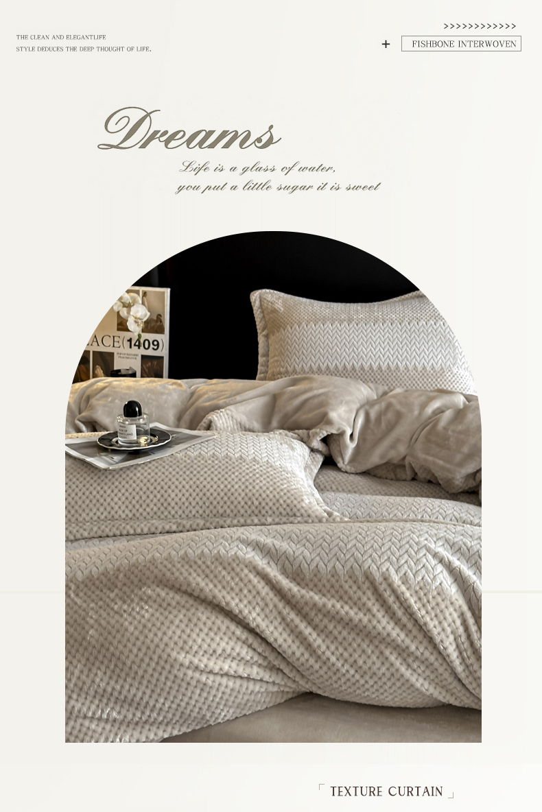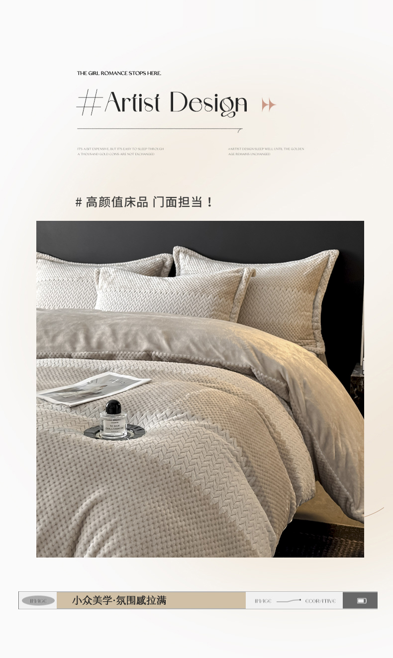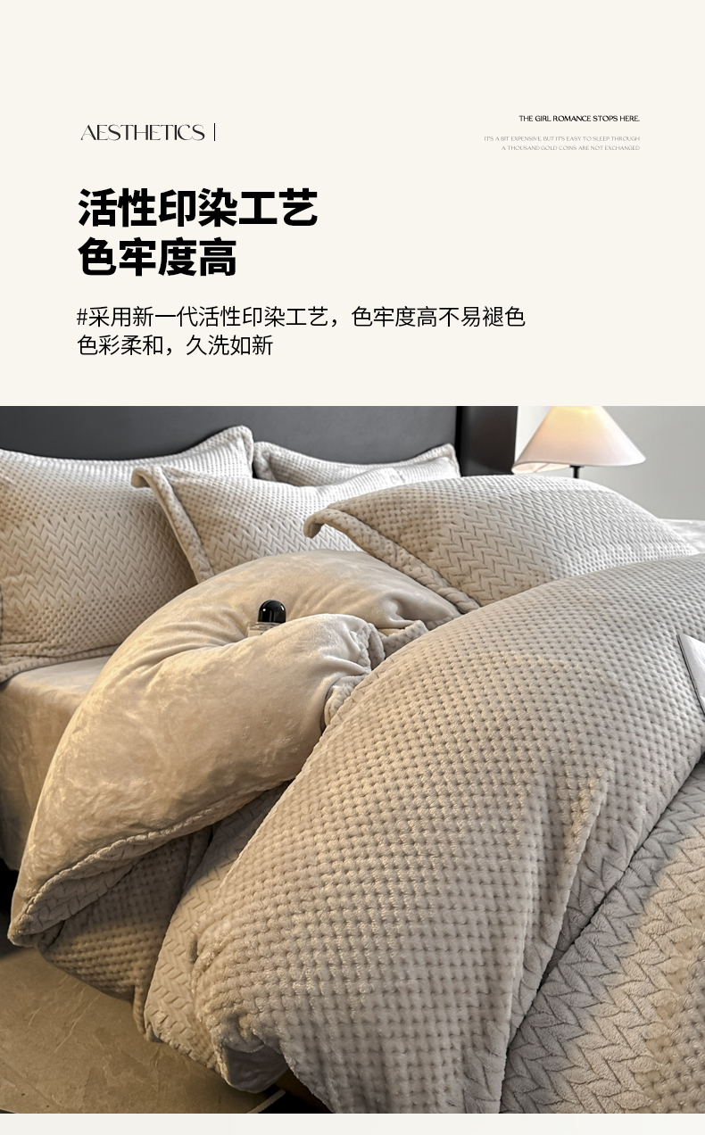 当前位置: 91家纺网 > 商品网购 > 床品套件 > 四件套 > 牛奶绒四件套 > 爱彼家纺 2025冬季新款色织拼色编织提花轻奢牛奶绒四件套-织锦系列 织锦-咖韵